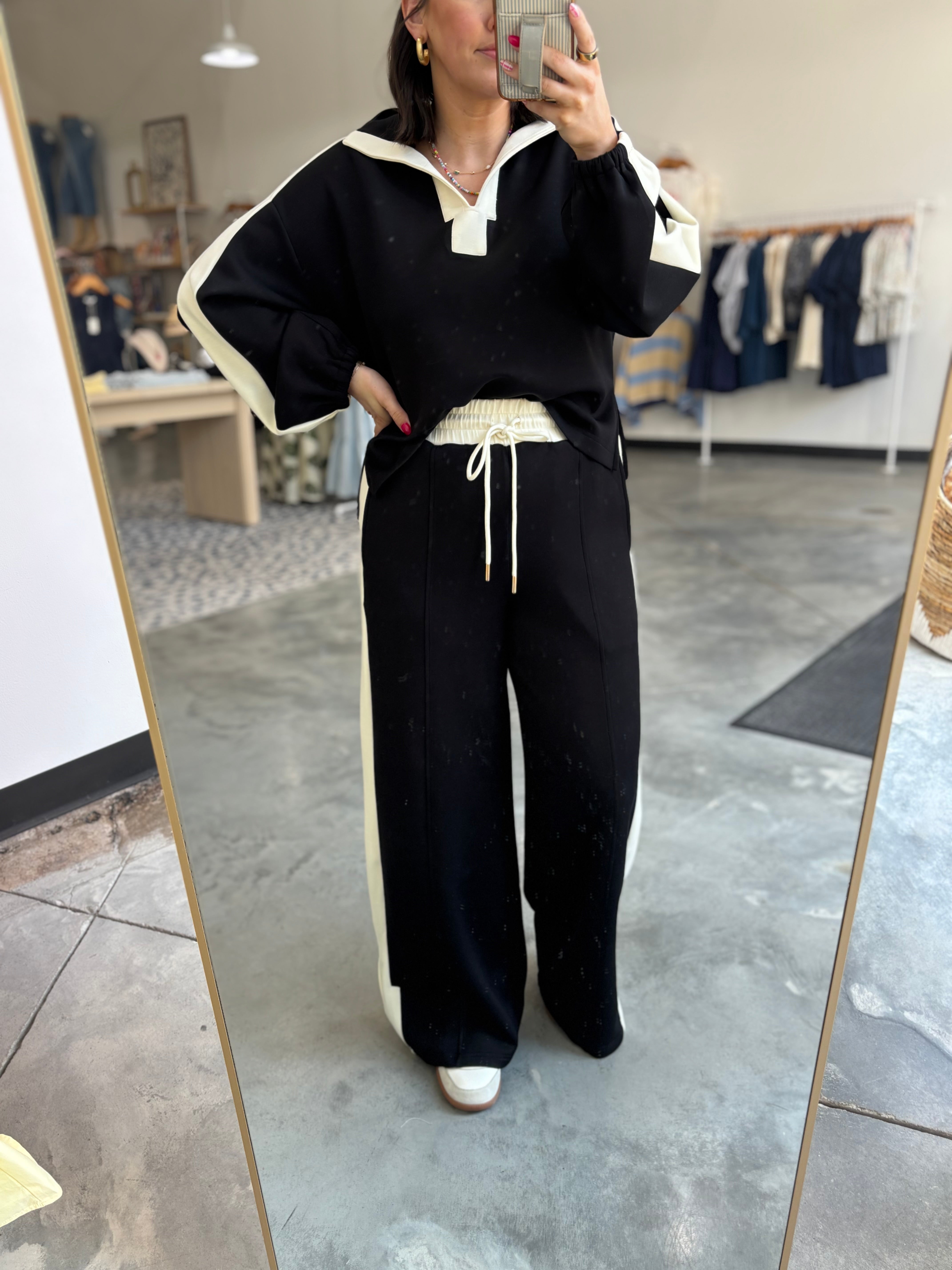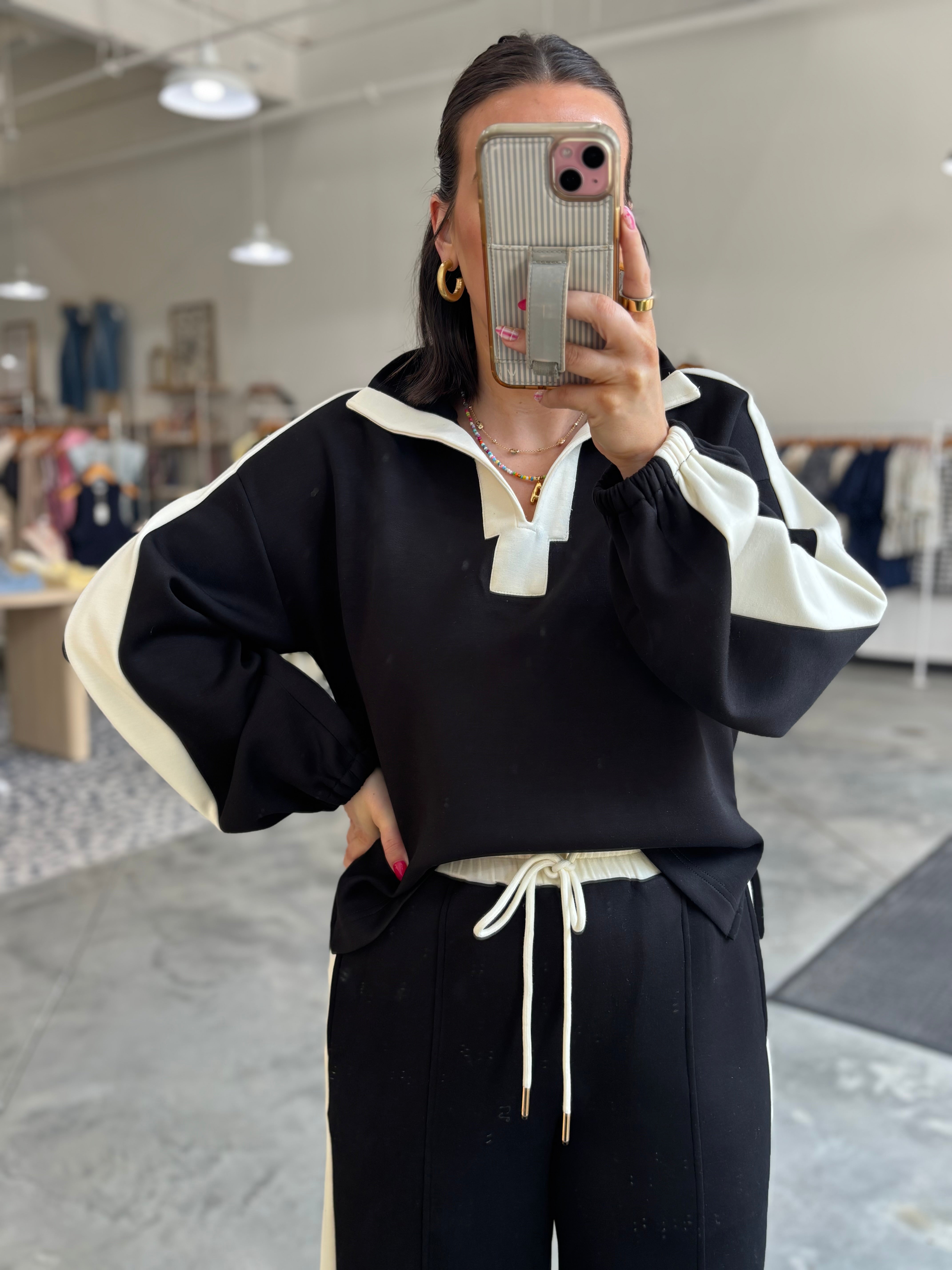 Bold detail meets sporty chic in our Casual Knockout Collared Top. It's perfect for running errands, lounging, or making a statement to go!
