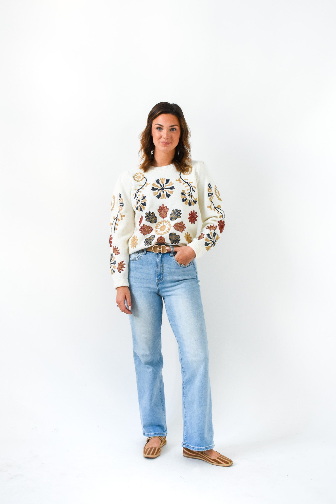 Wrap yourself in autumn charm in our Fall In Bloom Floral Embroidered Sweater. Effortlessly cozy yet polished, it's the perfect layer for crisp mornings and all your fall favorites!
