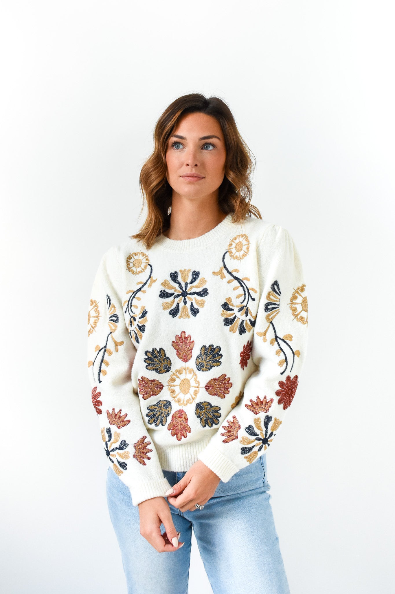 Fall In Bloom Floral Embroidered Sweater