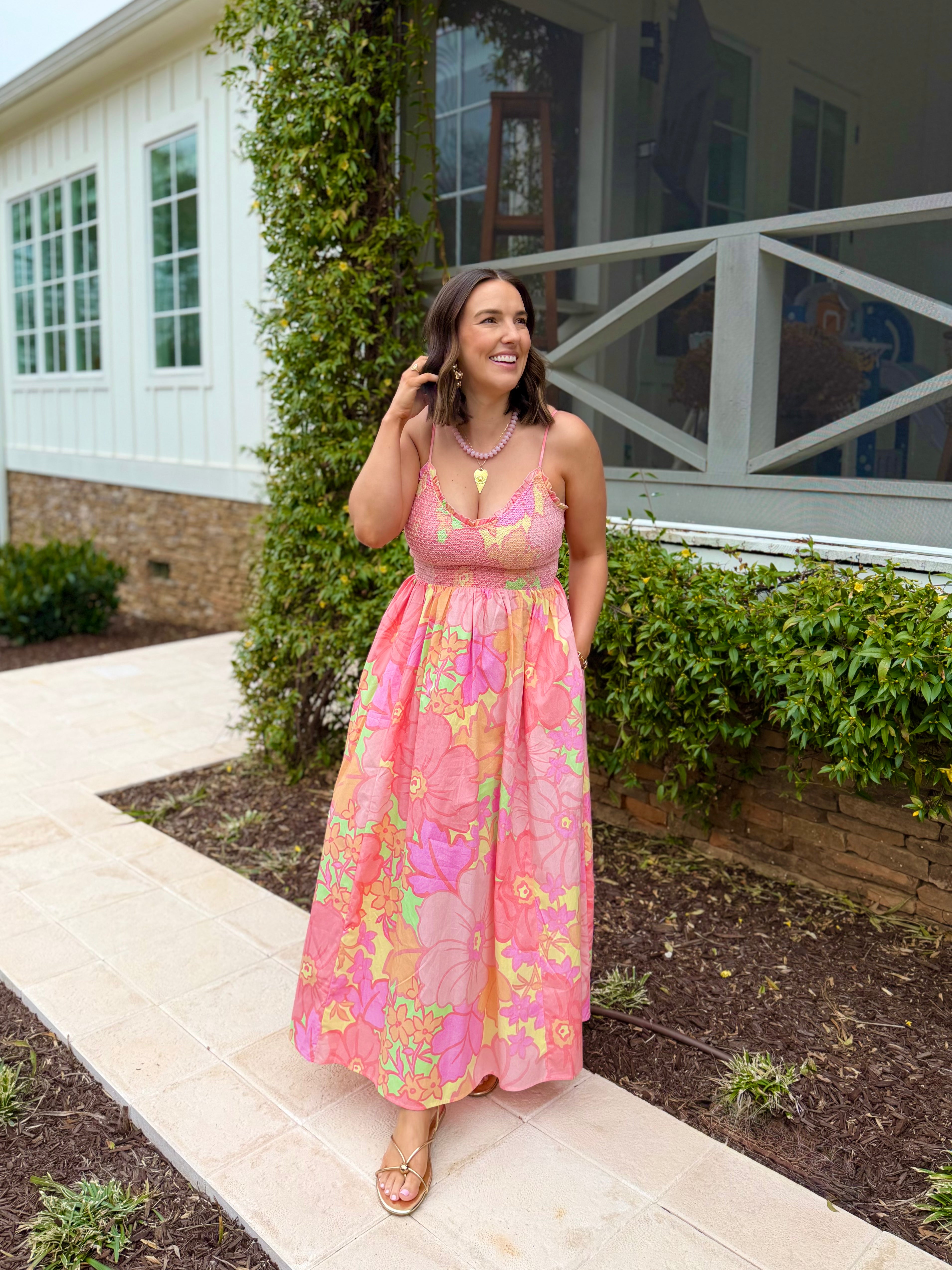 Our Karlie Big Floral Smock Maxi Dress is a total daydream. The comfy smocked bodice meets bold blooms for a look that's equal parts relaxed and romantic!
