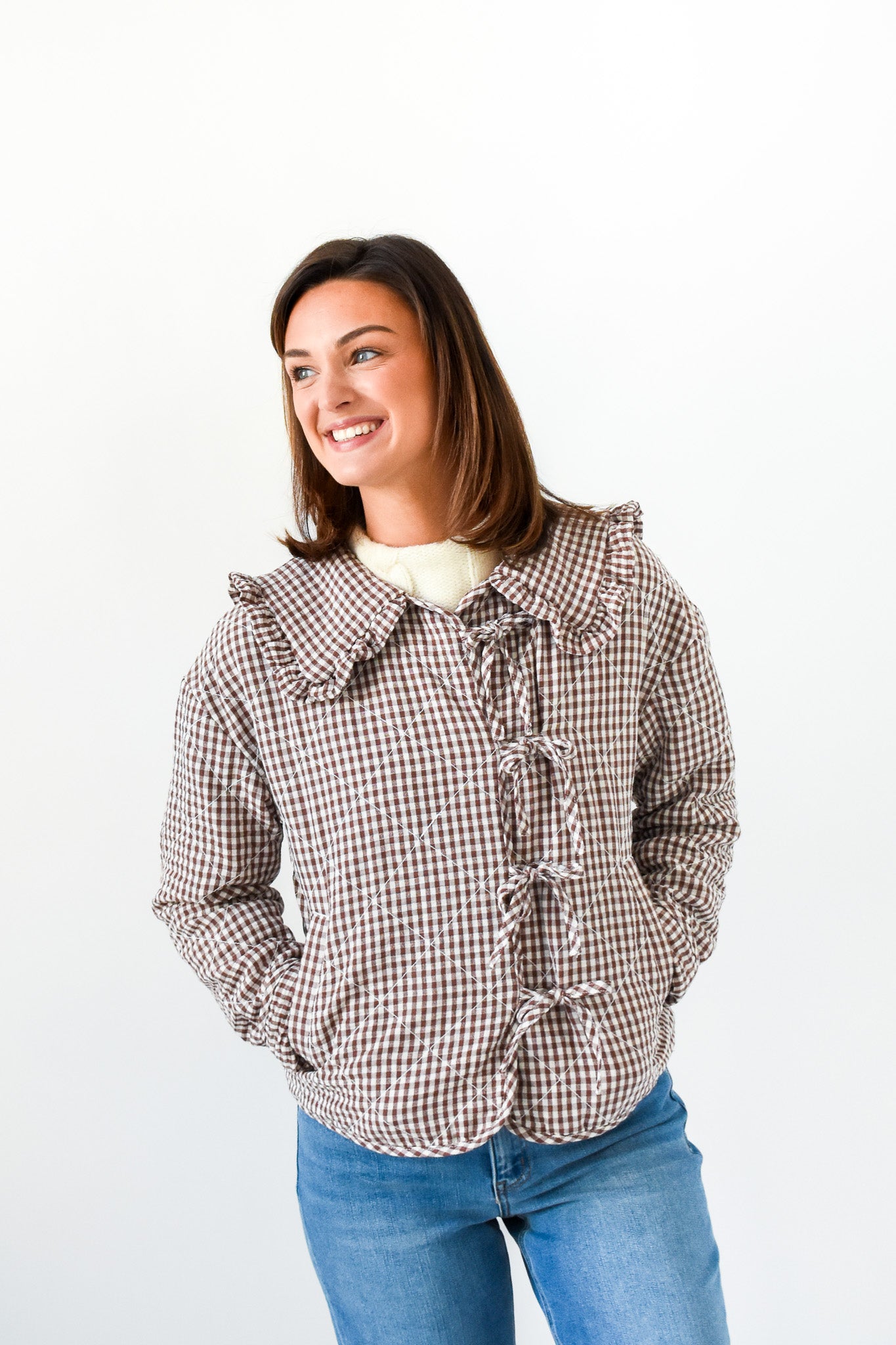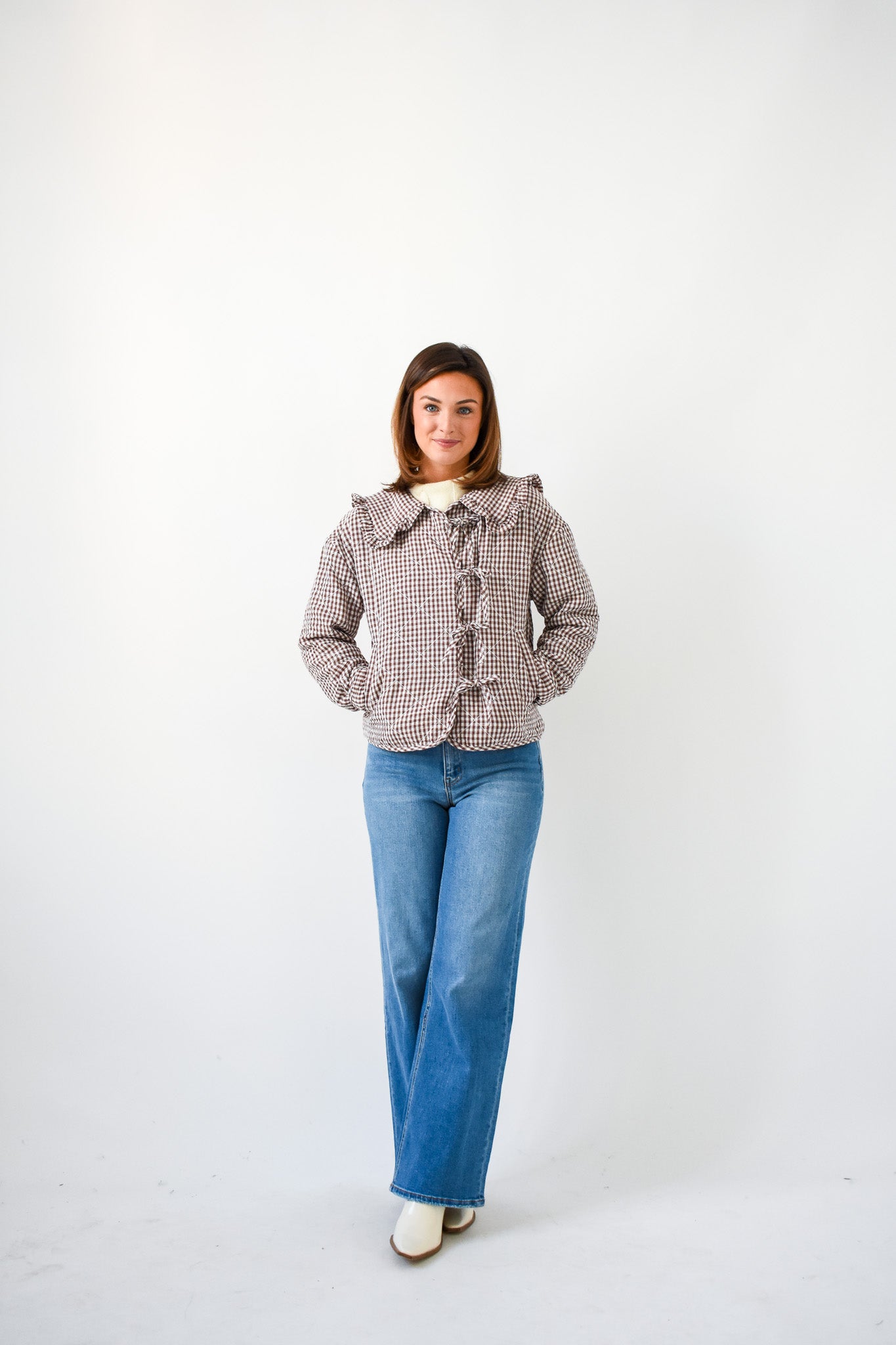 Cozy up in countryside charm with our Karlie Gingham Collar Novelty Jacket, the perfect blend of classic checks and modern chic. It layers beautifully over denim and knits for a look that's sweet, seasonal, and so easy to love!