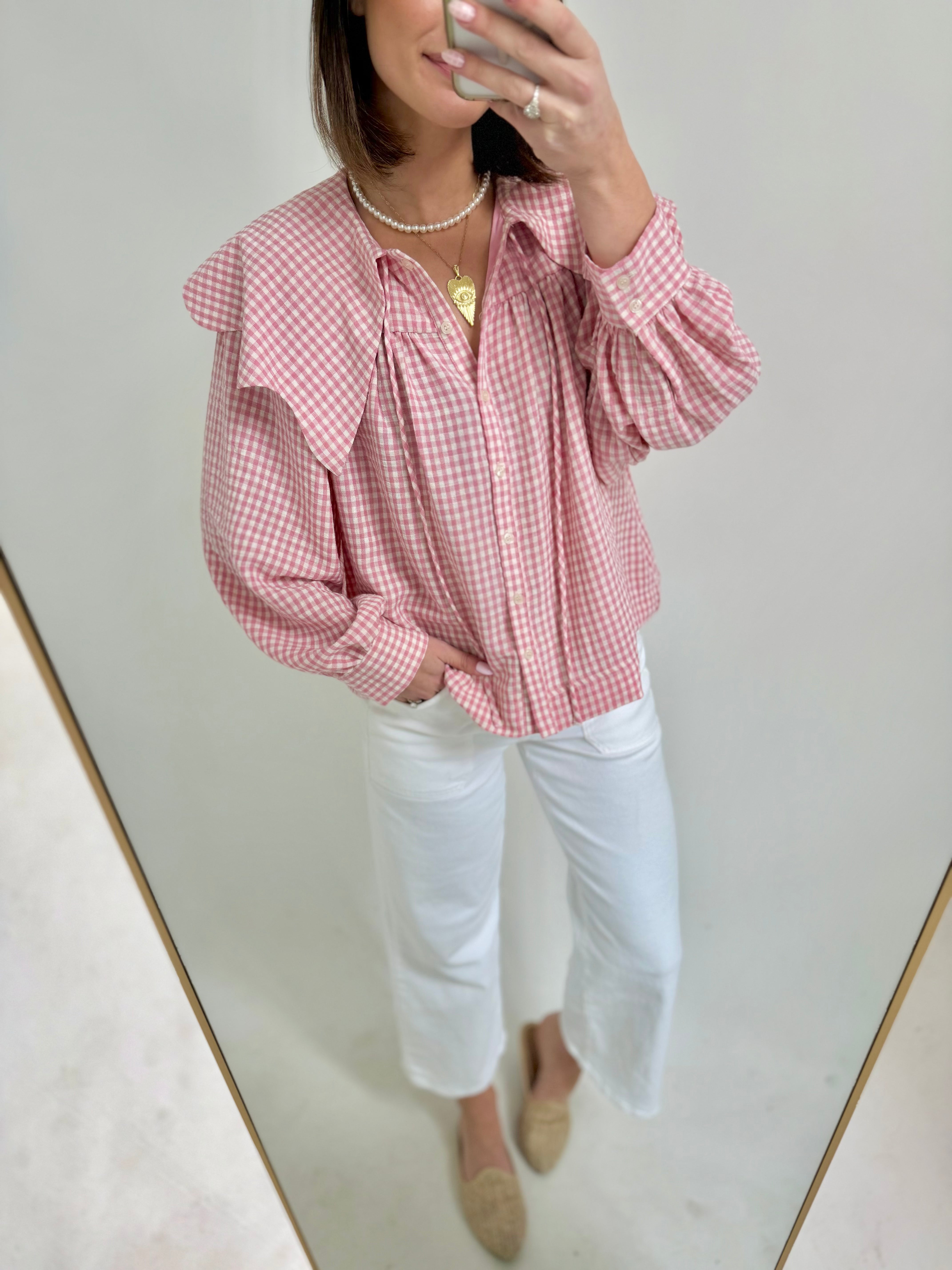 Karlie Gingham Peter Pan Collar Top