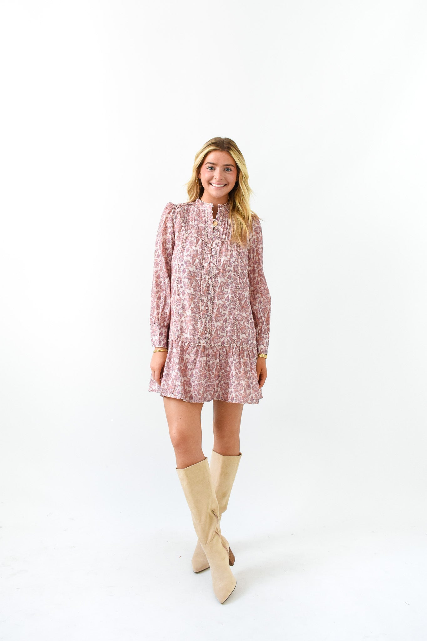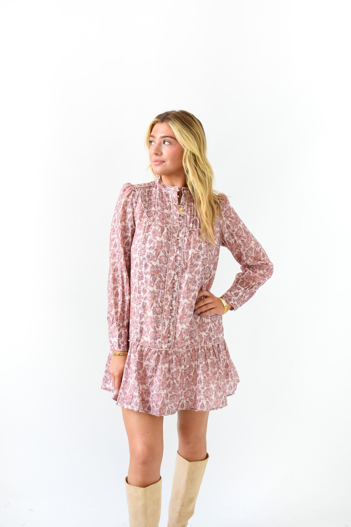 Our Mauve Over Darling Floral Dress is the definition of feminine charm. It's the perfect pick for brunch dates, garden parties, or just feeling pretty any day!