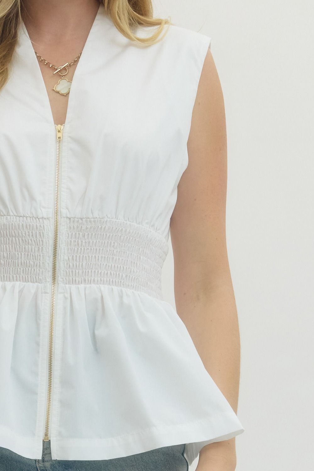 Polished Peplum Zip Front Top