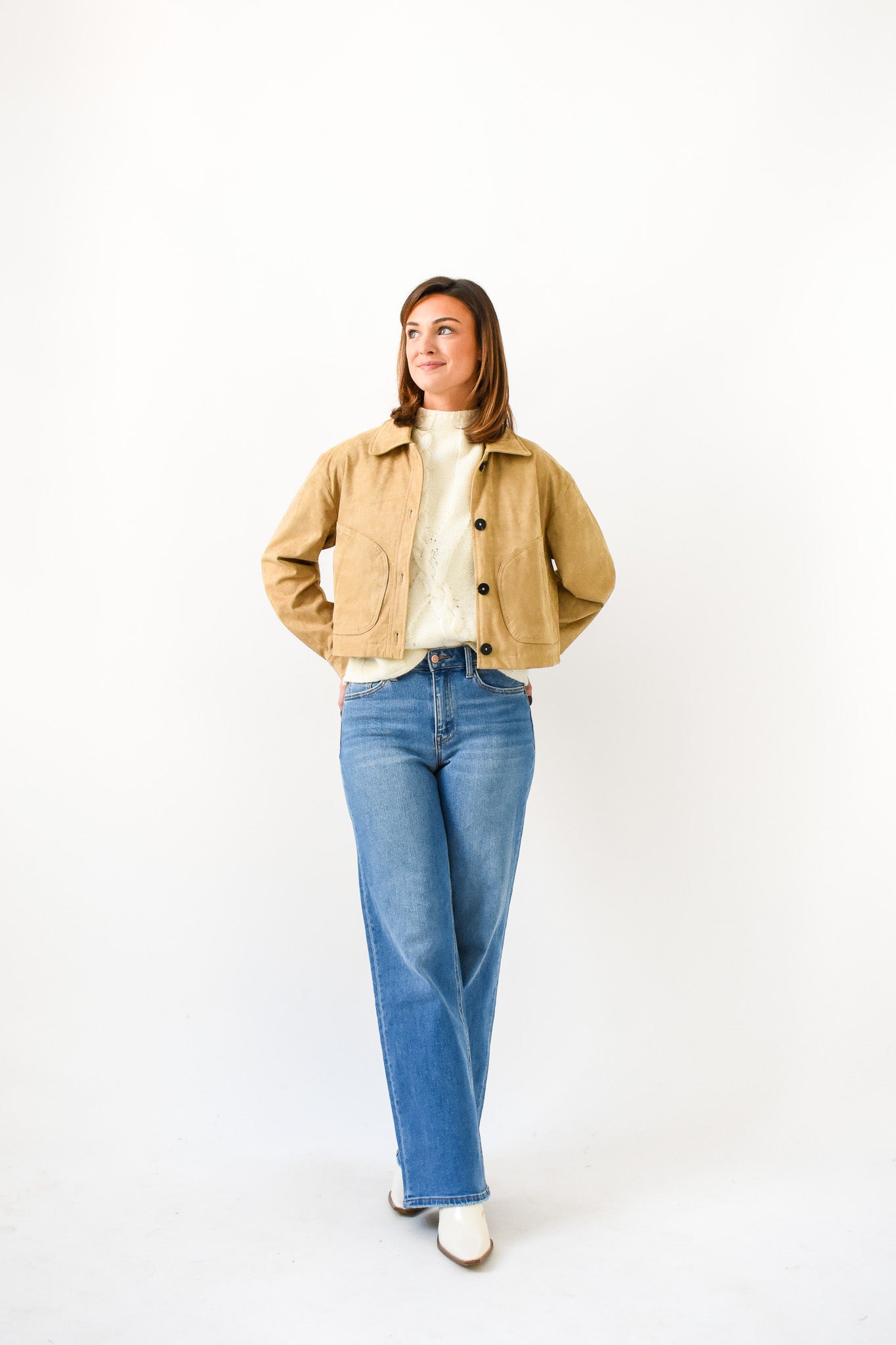 Turn heads in our Suede Behavior Cropped Jacket that's cropped to perfection and full of attitude. This jacket was made to steal the spotlight!