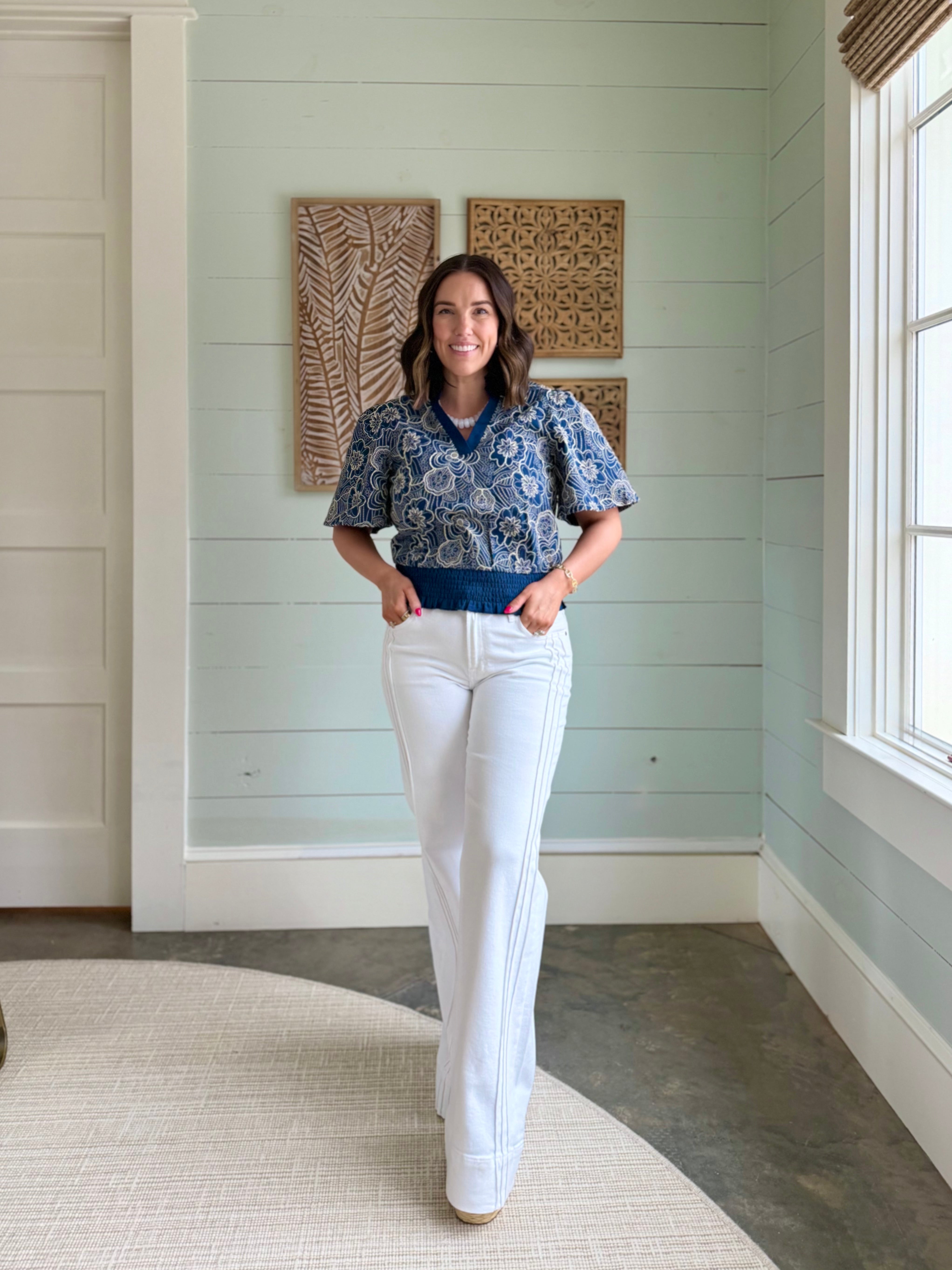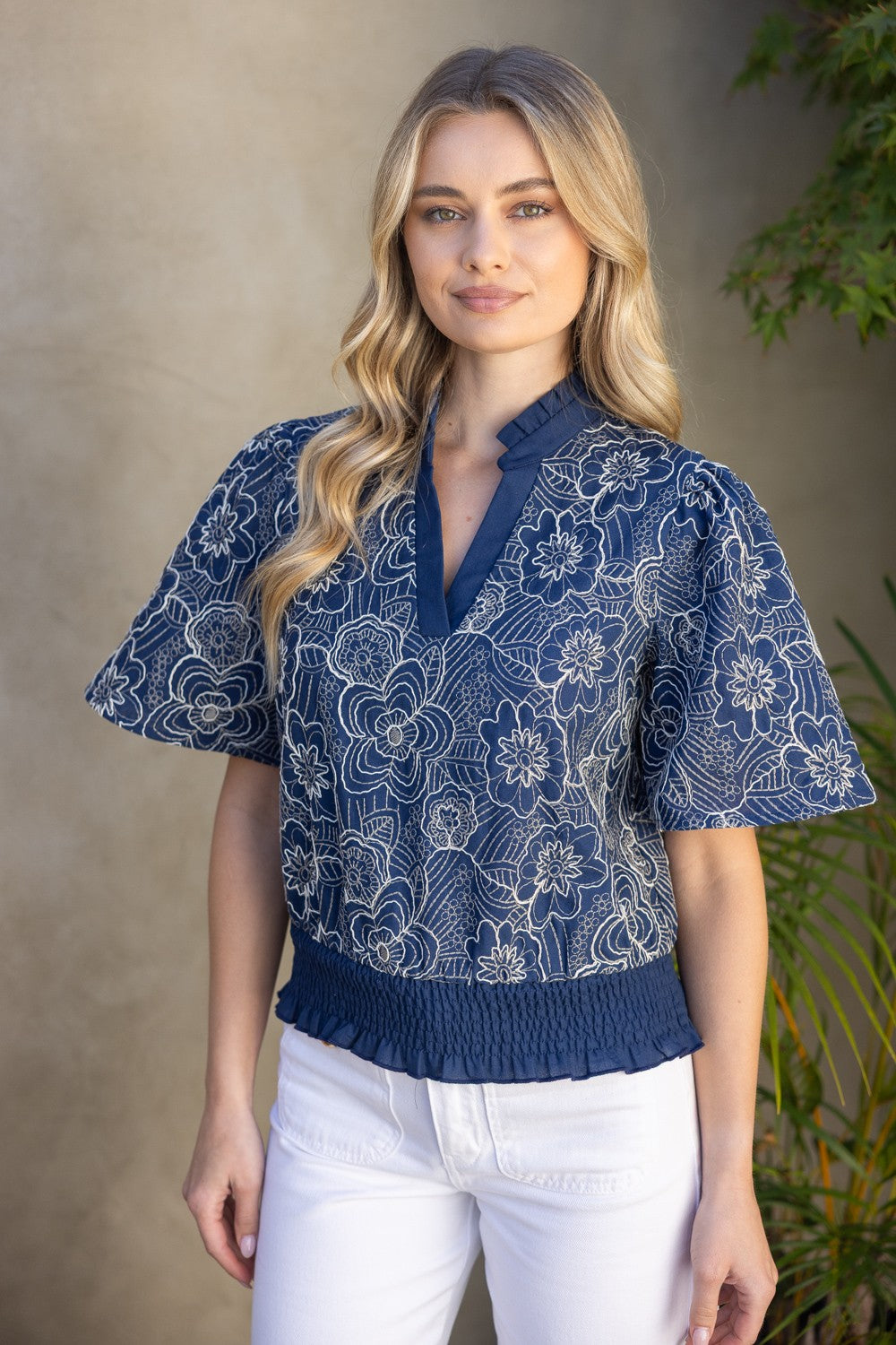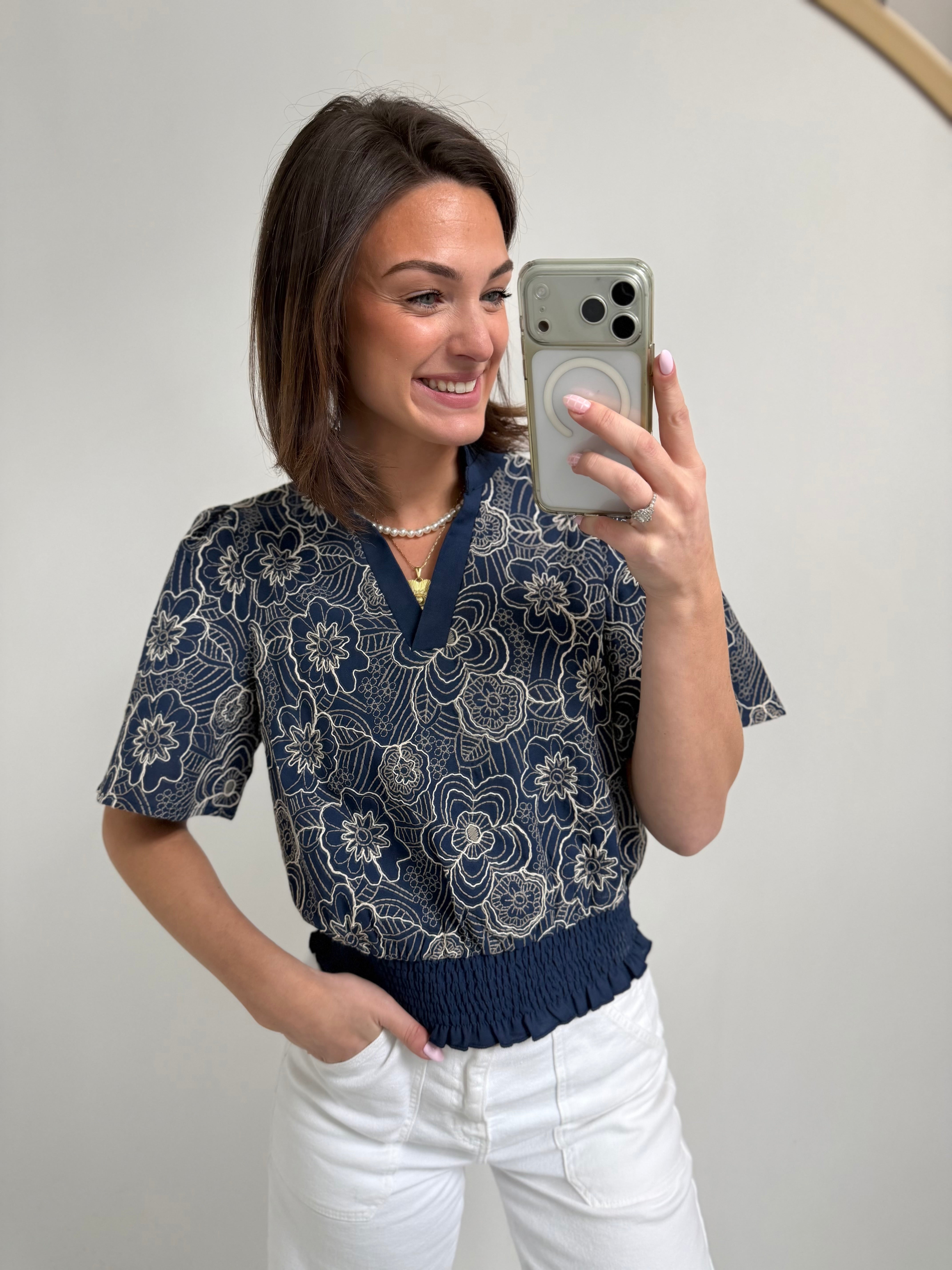 Classic navy meets delicate embroidery in our Thread Lightly Floral Embroidered Top. Dress it up with a crisp white denim or keep it casual with your favorite cutoffs - either way she's ready to bloom wherever you take her!