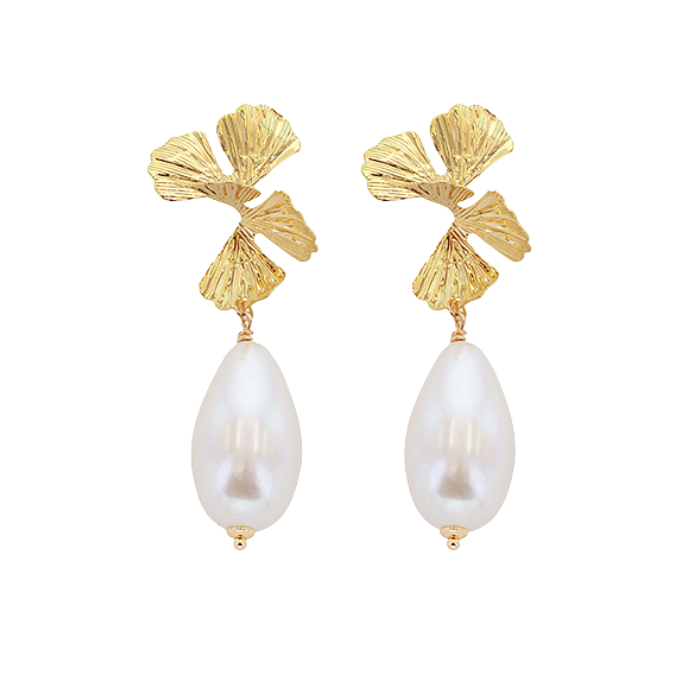 Textured Petal & Pearl Drop Earrings