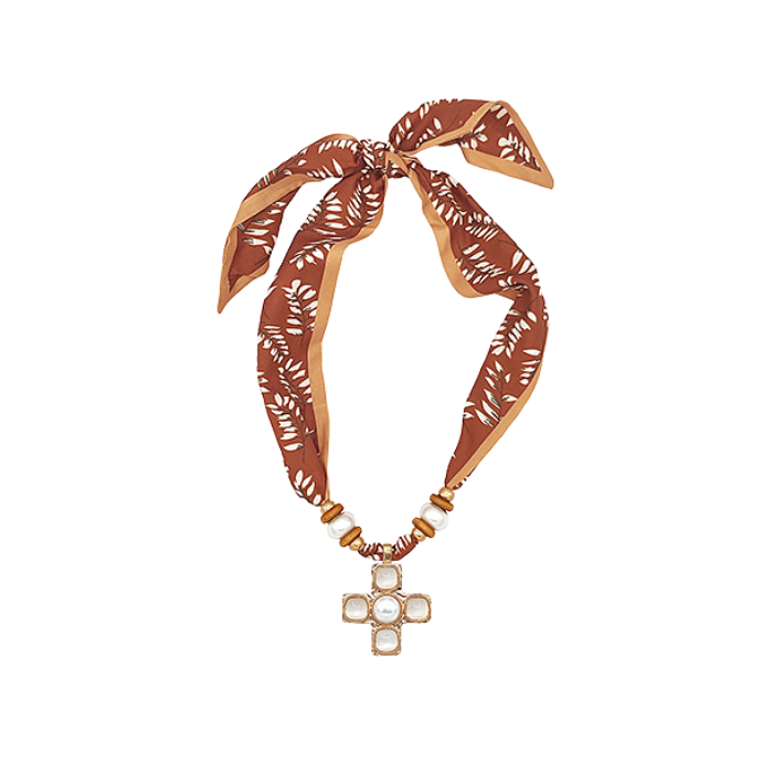 Our Jeweled Cross Pendant Scarf Necklace is the perfect blend of trendy and chic. It adds a fun, flirty twist to any outfit!