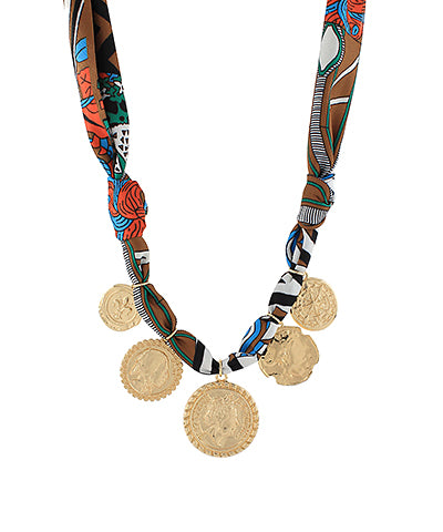 Our Multi Coin Charm Scarf Necklace is the perfect blend of trendy and chic. It adds a fun, flirty twist to any outfit!