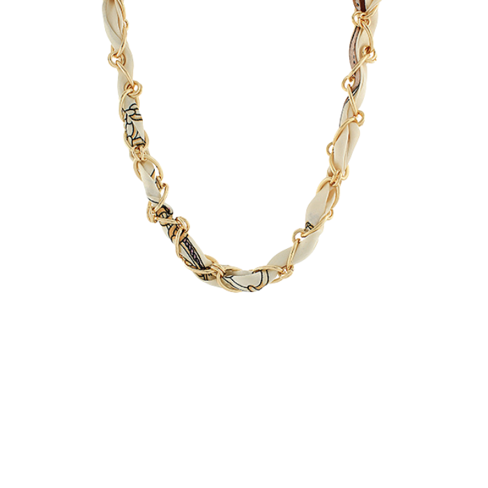 Our Scarf Fabric Oval Chain Necklace is the perfect blend of trendy and chic. It adds a fun, flirty twist to any outfit!