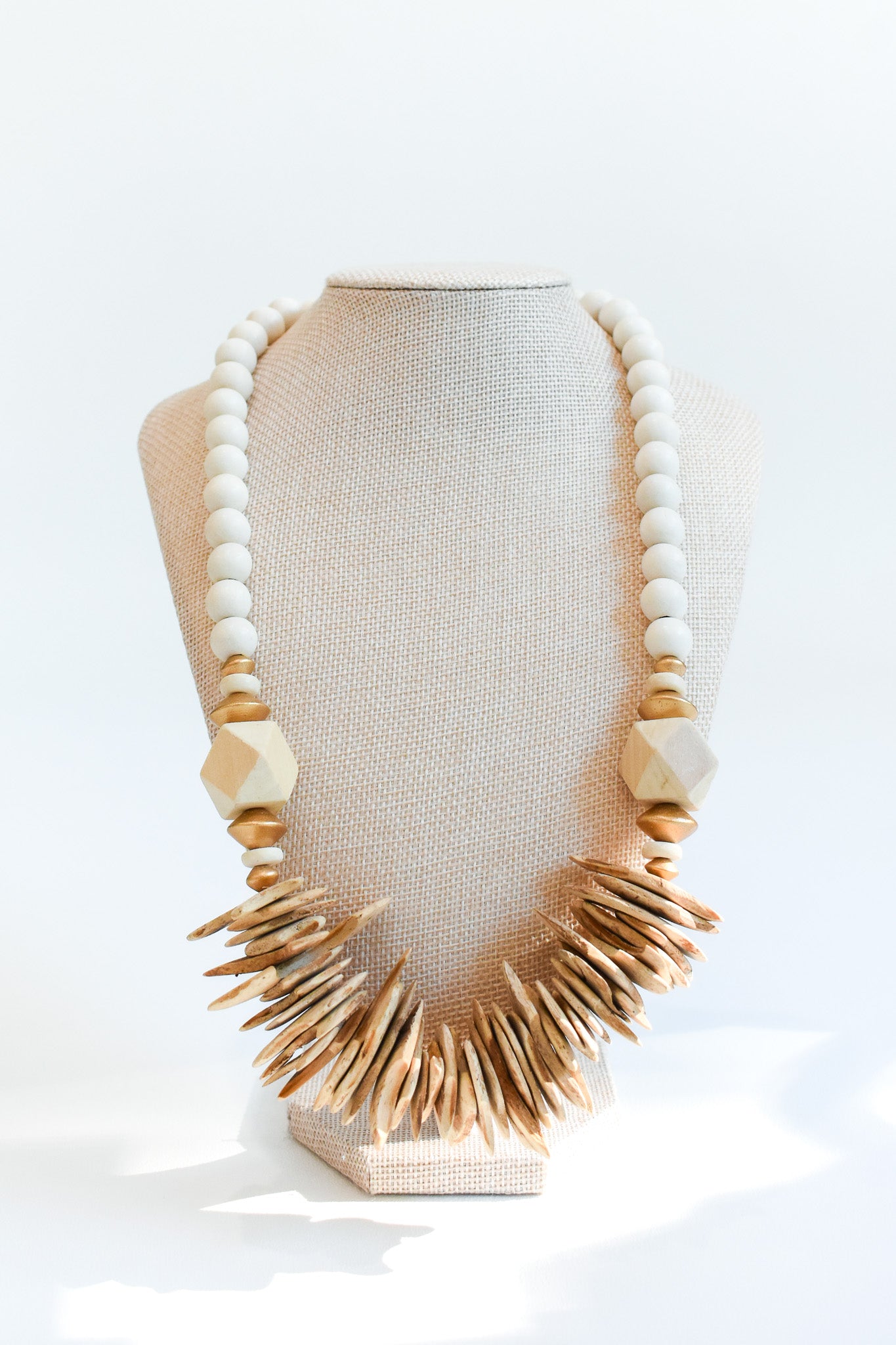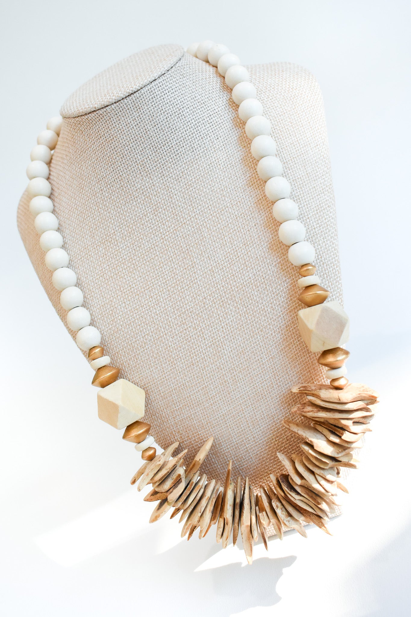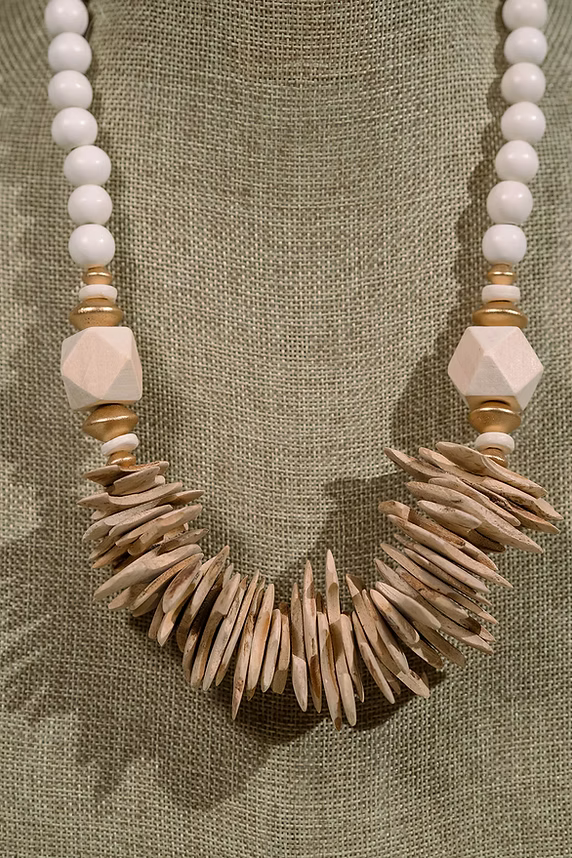 White wood beads paired with coconut wood toned accent beads