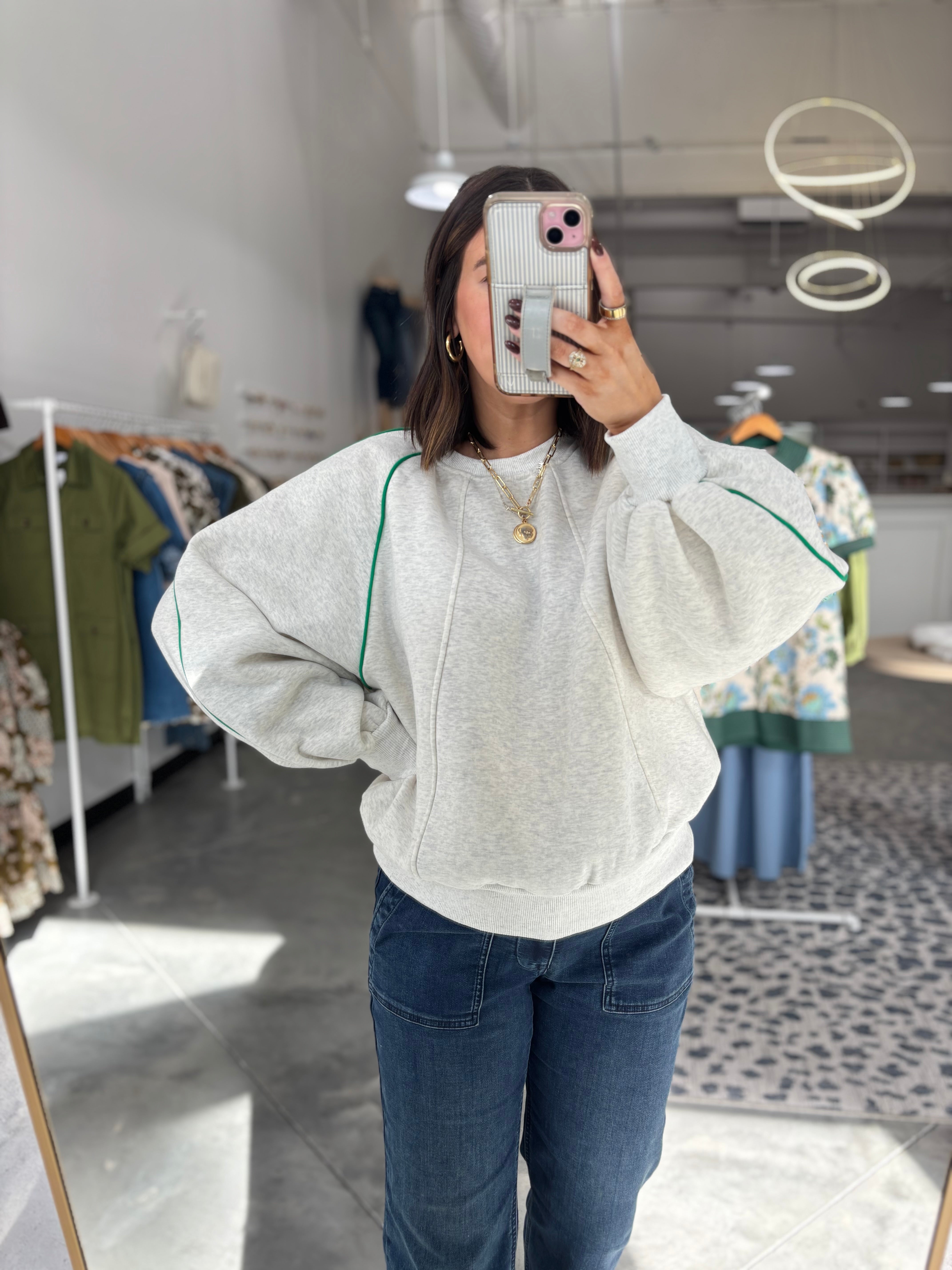 Classic meets playful in our A Pop Of Piping Crewneck Sweatshirt. Its soft feel and chic detailing make it an easy favorite for everyday wear!
