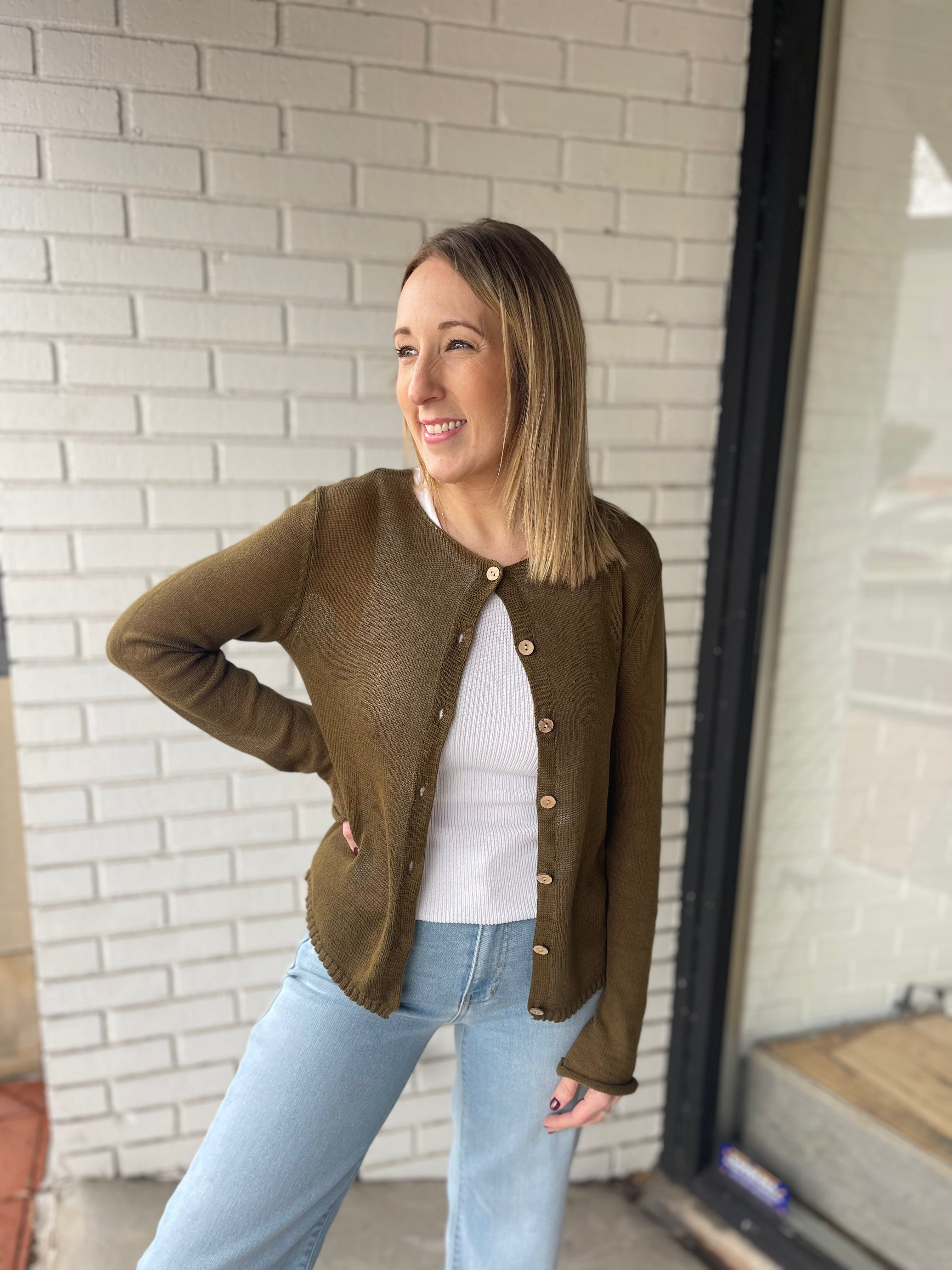 Our Cute As A Button Cardigan is the perfect layering piece to add fun to any outfit. You can wear it as a top or layered over your favorite basic tee.