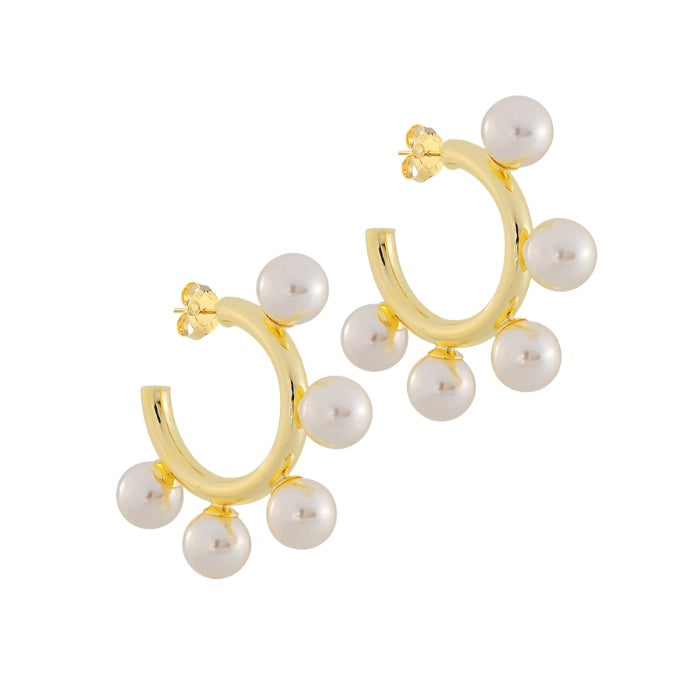 - Approximately 1.5" inch hoop with 5 ivory pearls