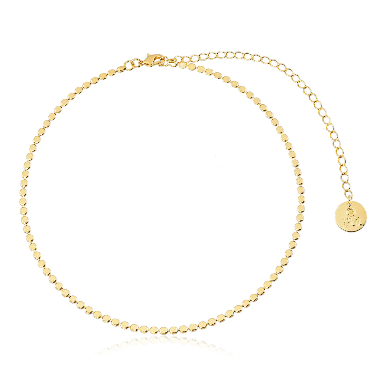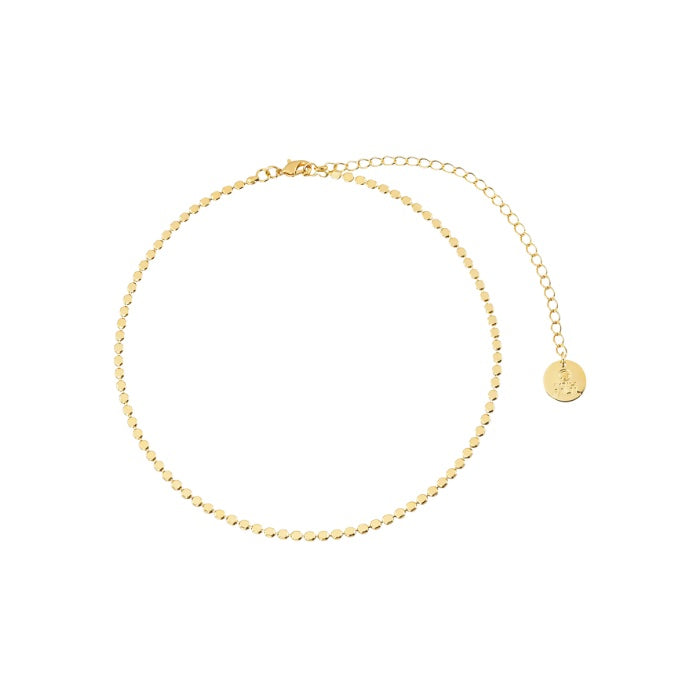 This brilliantly polished delicate necklace is intricately linked with tiny circles that will lay smoothly on your neckline. Layer it, mix and match, wear with everything!