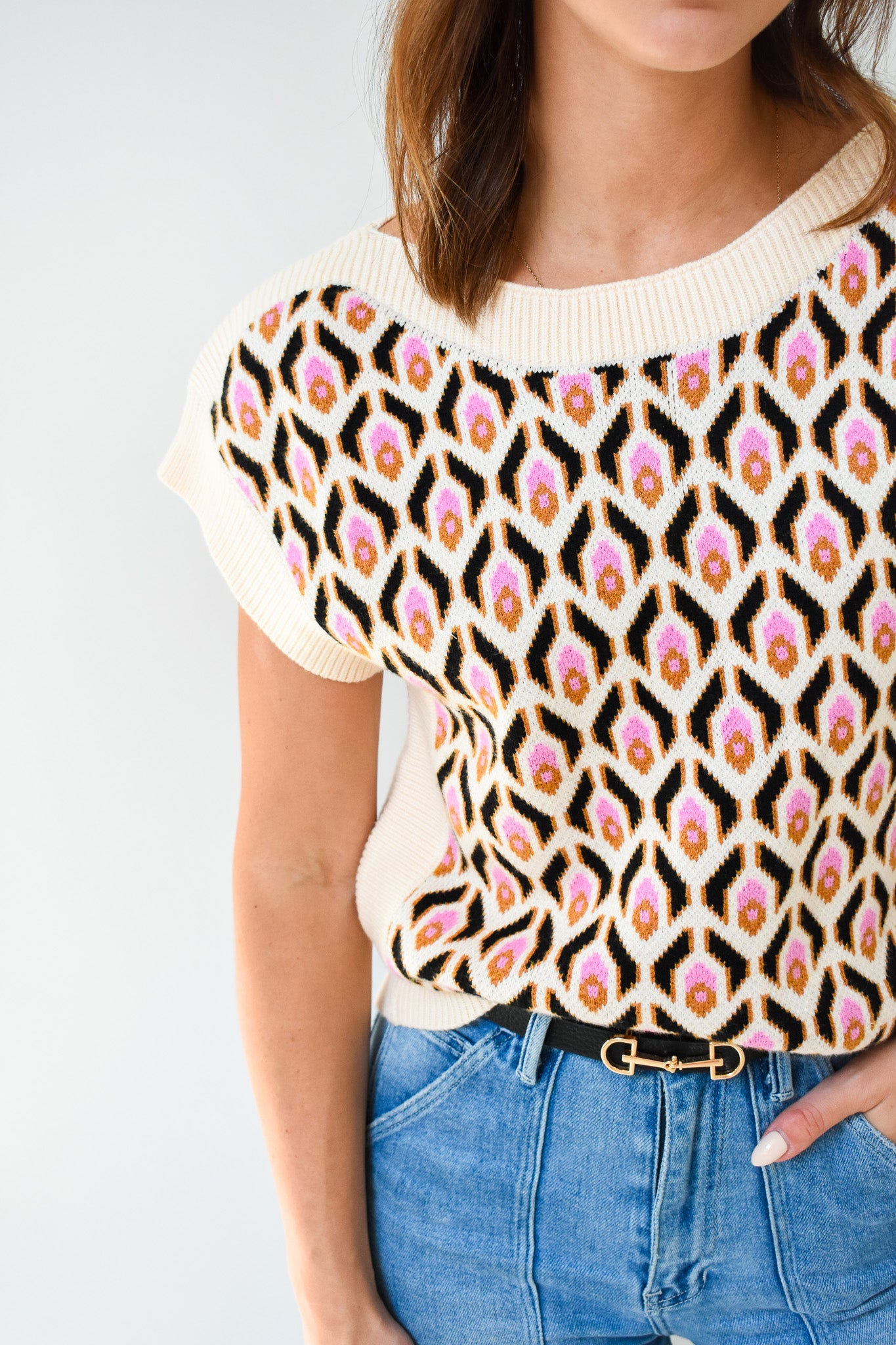A playful twist on cozy, our Diamond Days Sweater Vest brings retro charm with pops of pink and gold. Easy to dress up or dress down, it's the statement sweater your closet's been waiting for!