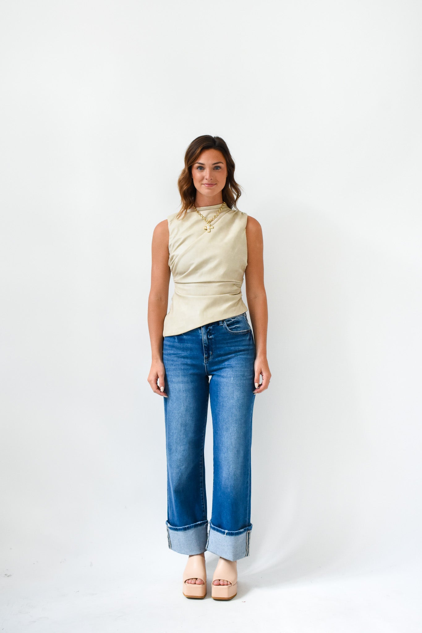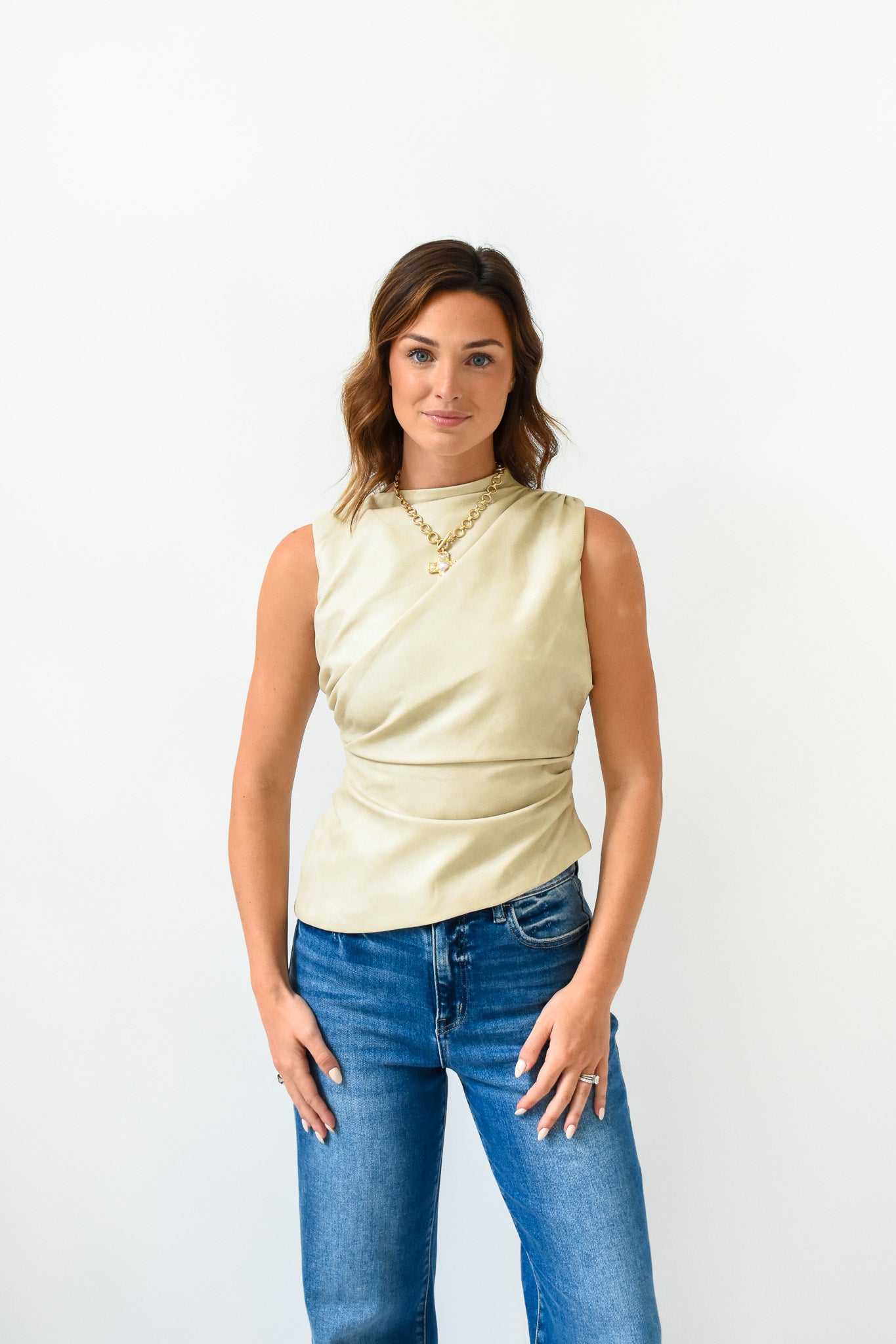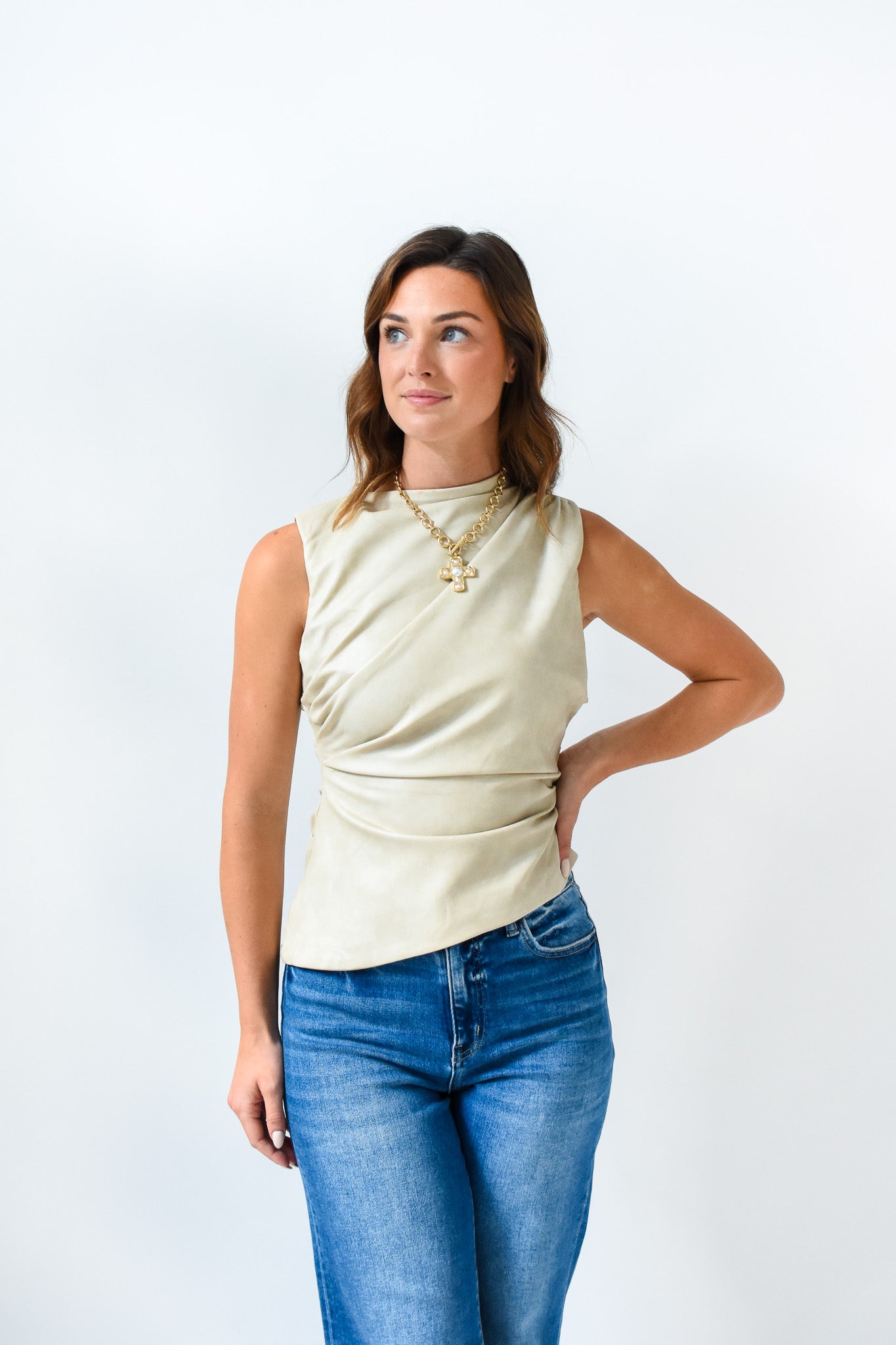 Sleek, structured, and unapologetically bold - our Forever Pleather Asymmetric Top is a standout piece that redefines elevated basics.