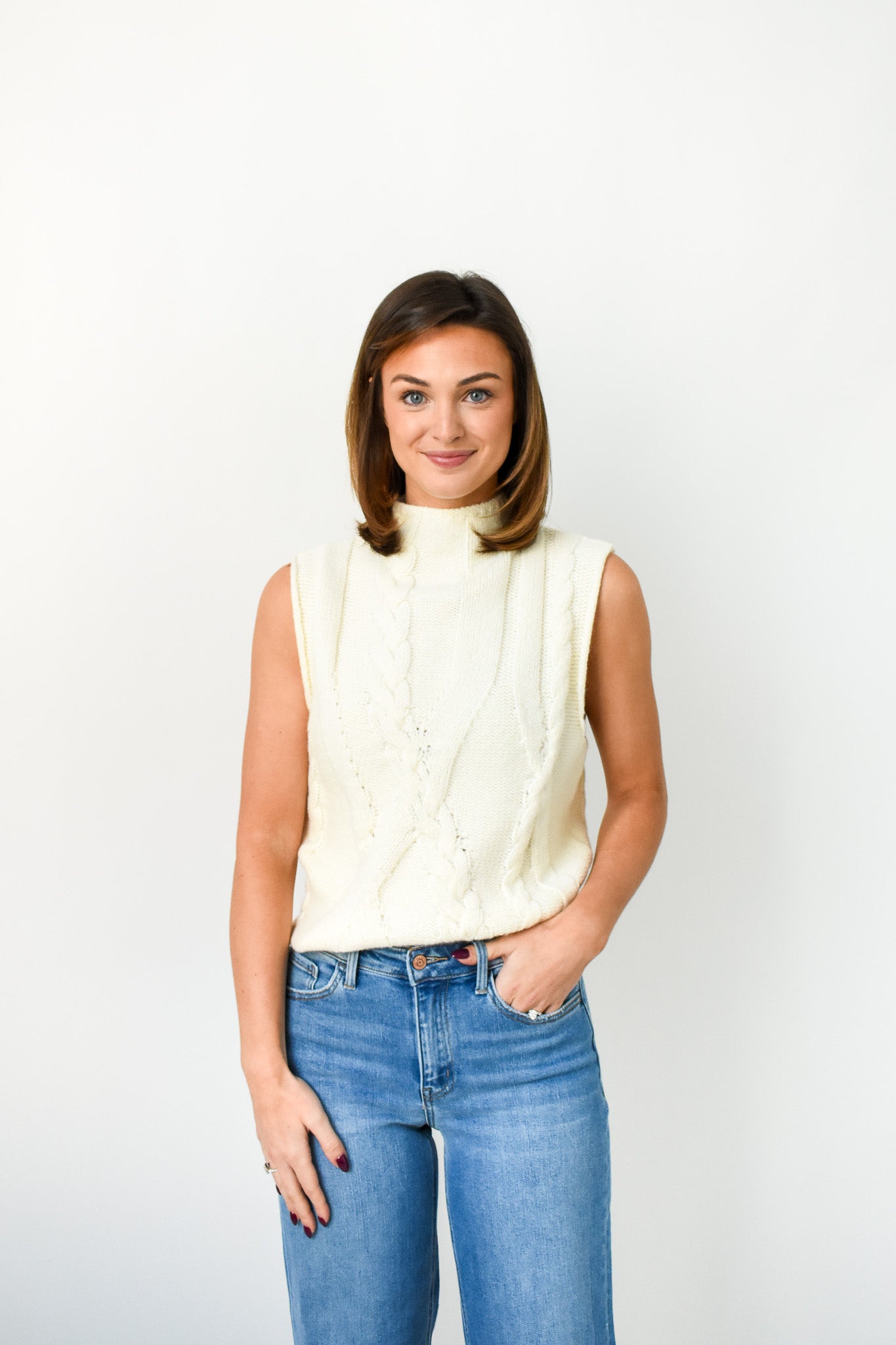 Wrap yourself in cozy charm with our Mock Star Cable Knit Sweater Vest - the perfect mix of timeless texture and modern edge. Layer it over a crisp button down or wear it solo for that effortlessly chic, "I just threw this on" vibe!