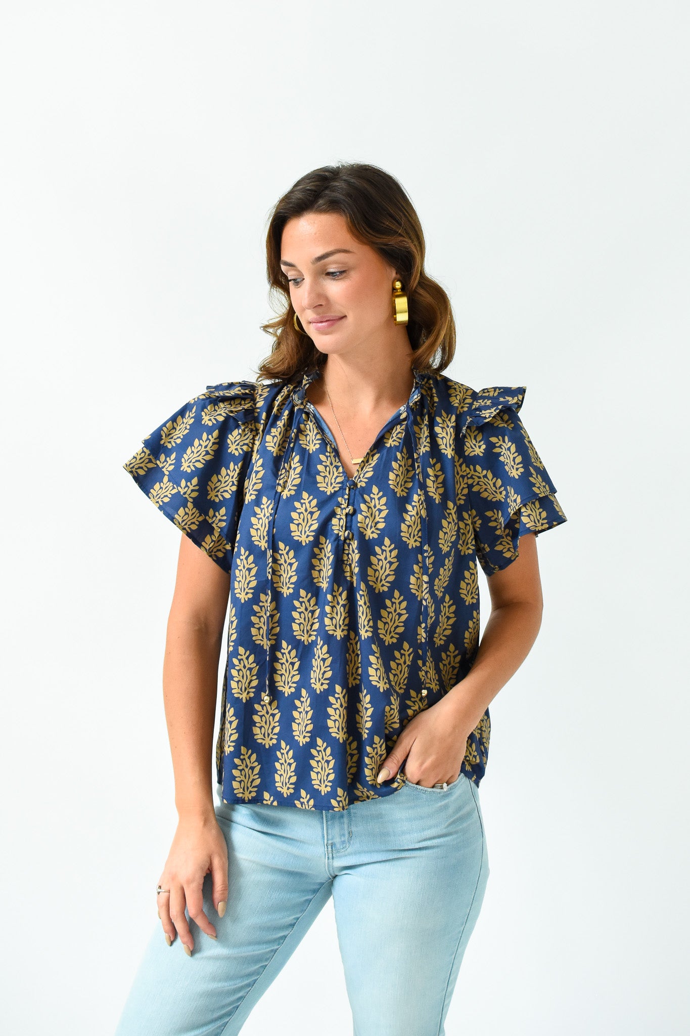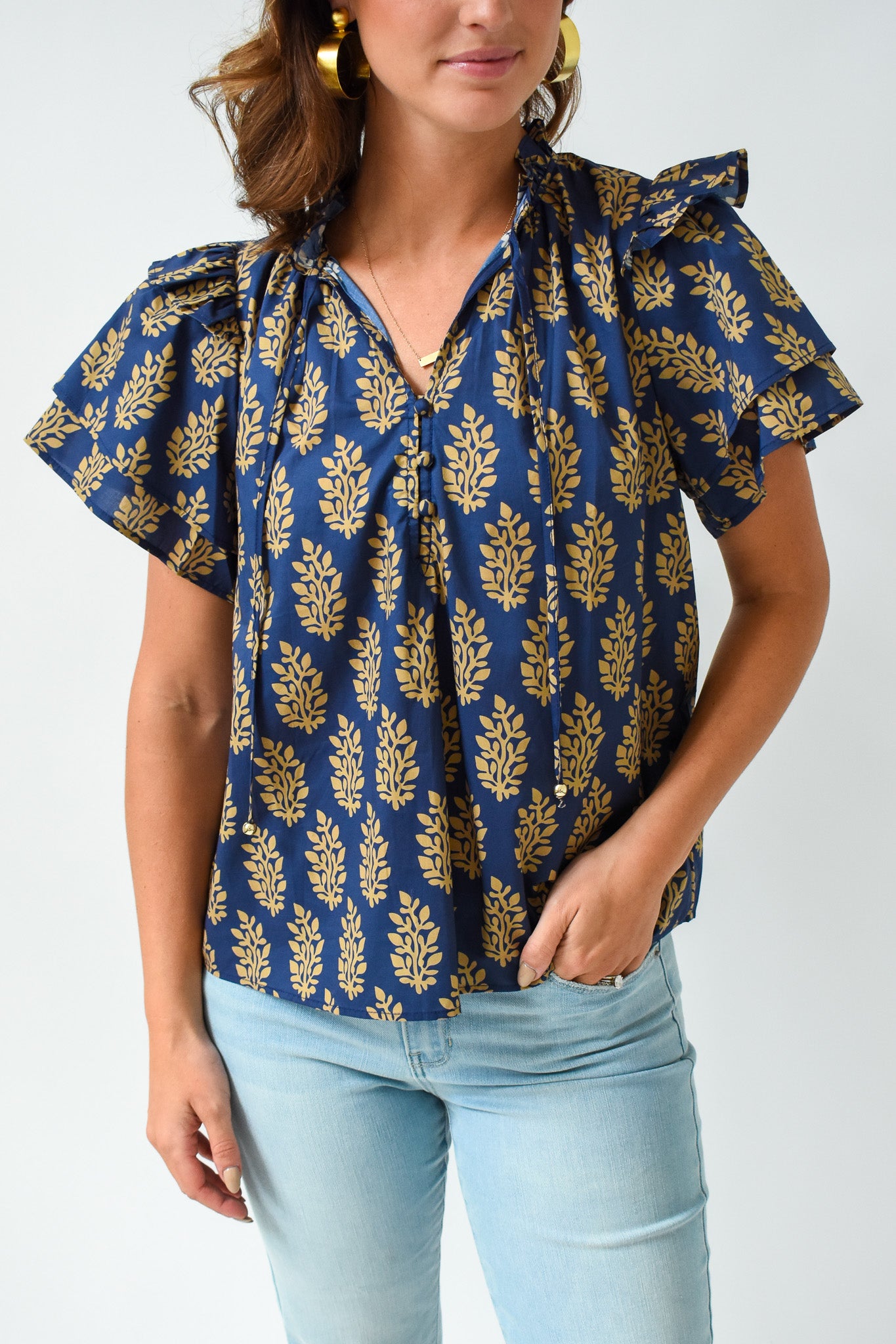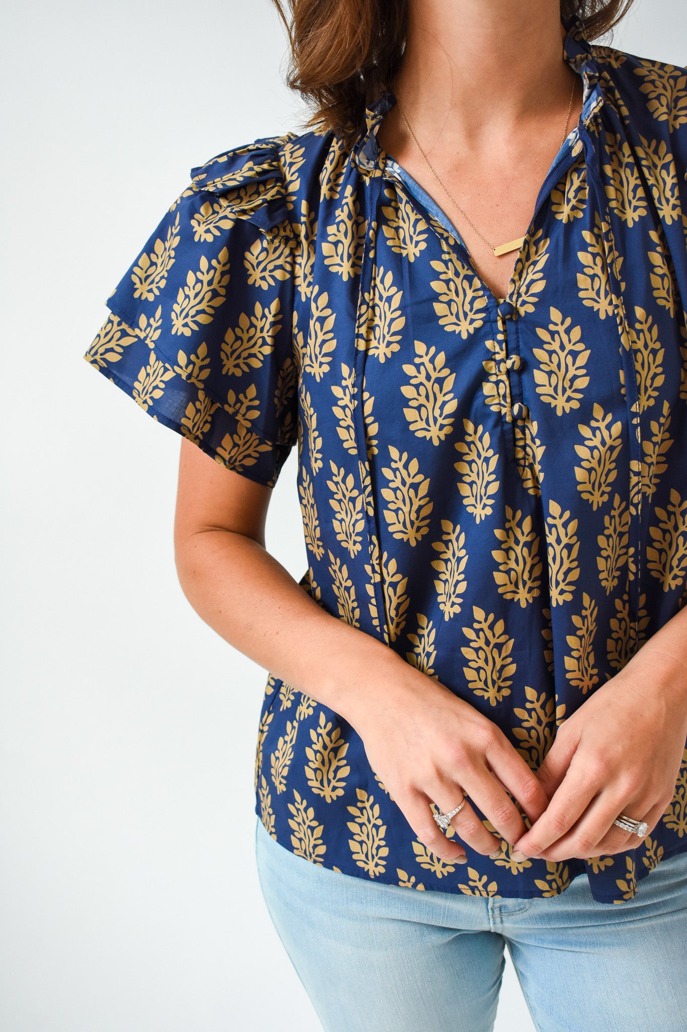 With soft tan floral bloom against a midnight backdrop- our Petal After Dark Top creates an effortlessly chic top that's perfect from day to night.