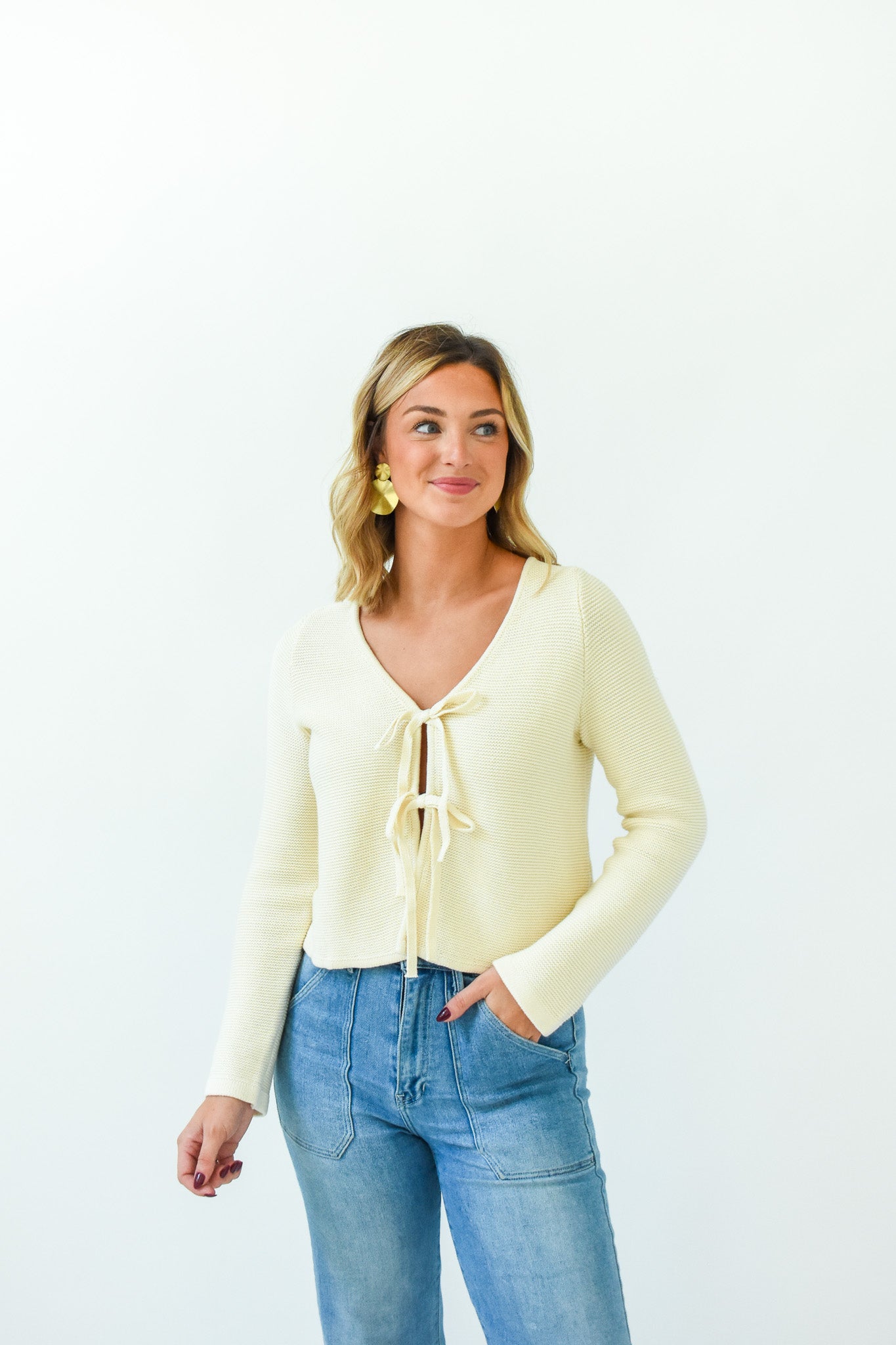 All Knit Up With A Bow Sweater is the perfect all top to add to your closet. It features two front tie closures, long sleeve, relaxed fit, straight hem.