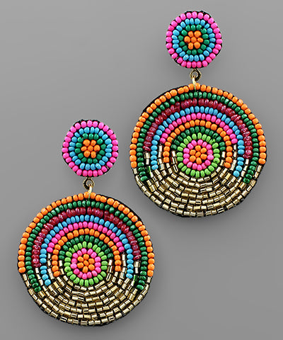 Fun earrings are something every girl needs! Our Beaded Two Disk Earrings feature acrylic detail with a post back.