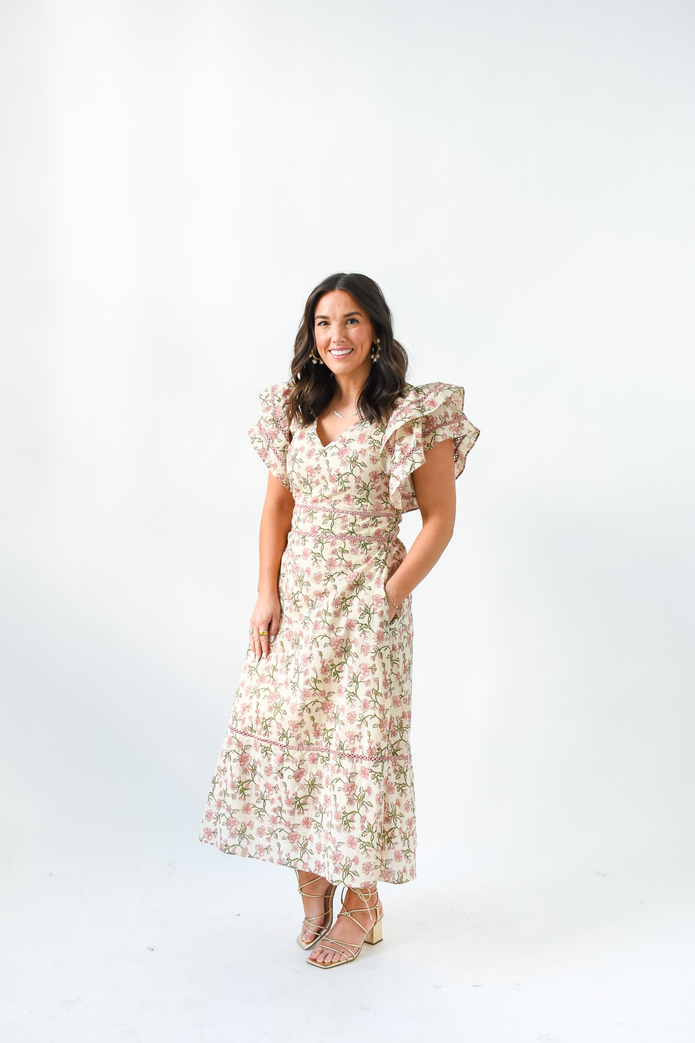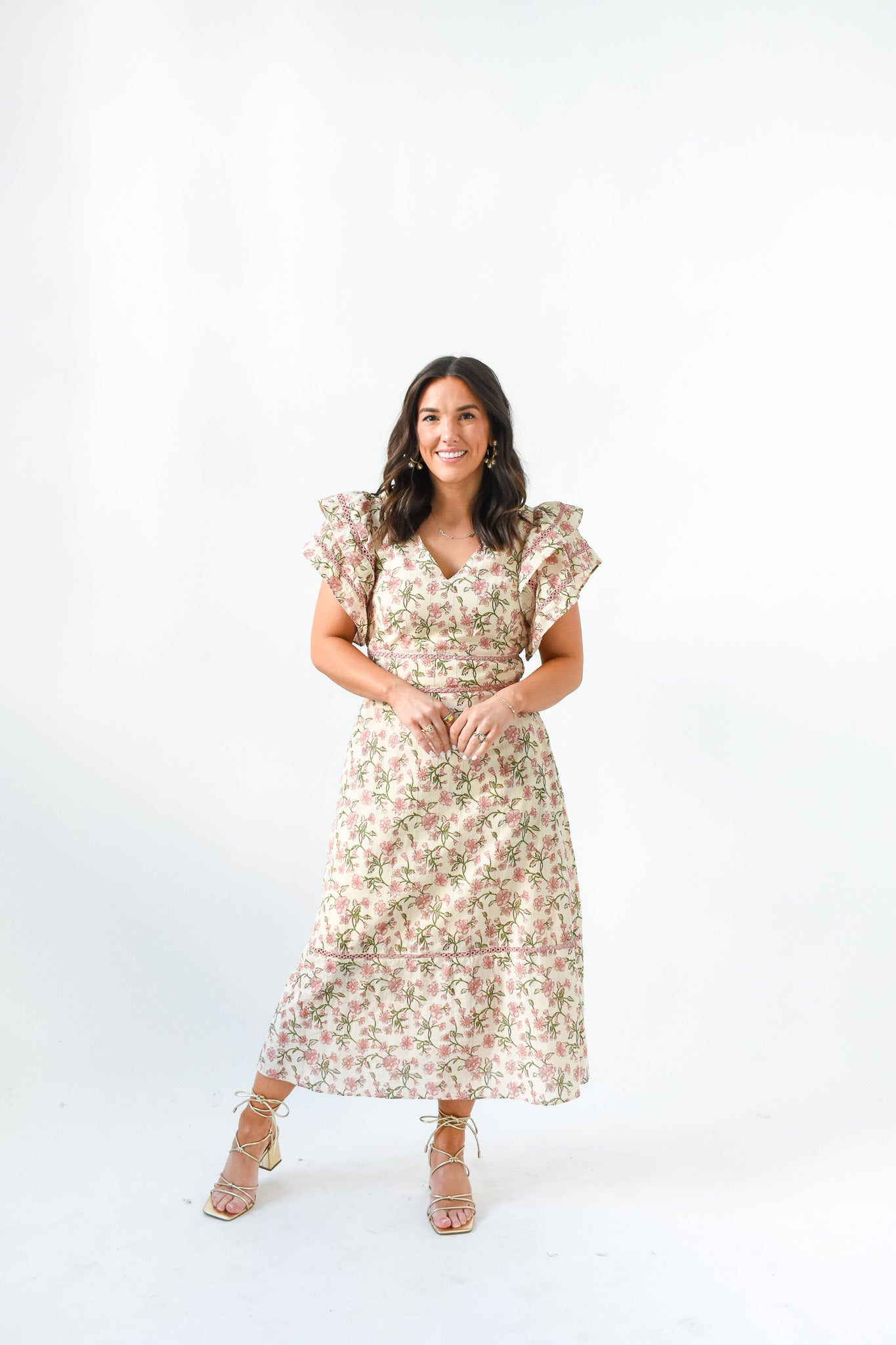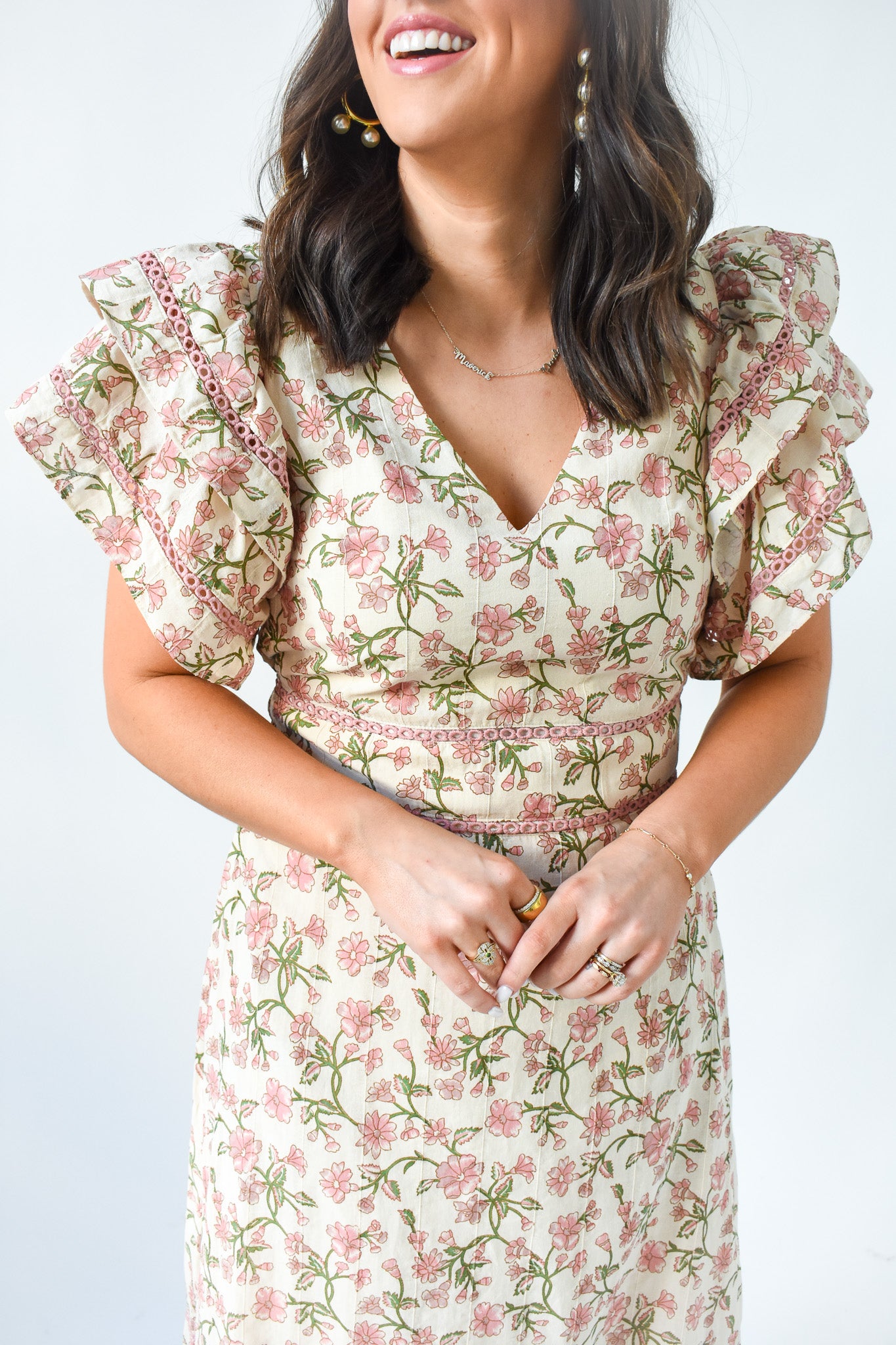 Blush And Bloom Floral Ruffle Sleeve Dress