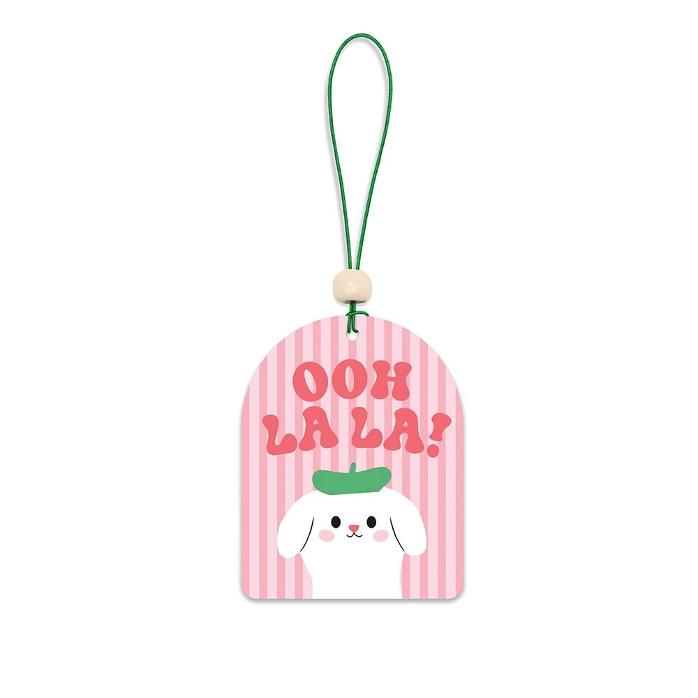 Hangs by an elastic band with a decorative wooden bead • Includes a scent-test sticker on each package