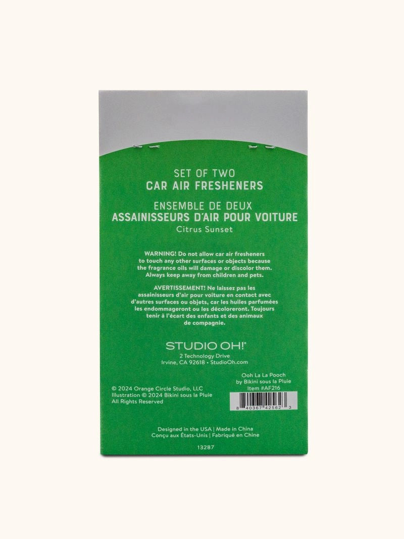 Make your drive time more pleasant with colorful car air fresheners from Studio Oh! These fragrance-infused designs help eliminate malodors and create long-lasting freshness in your vehicle. With two car air fresheners per package, you can mix and match designs between cars or keep a spare tucked in your glove box.