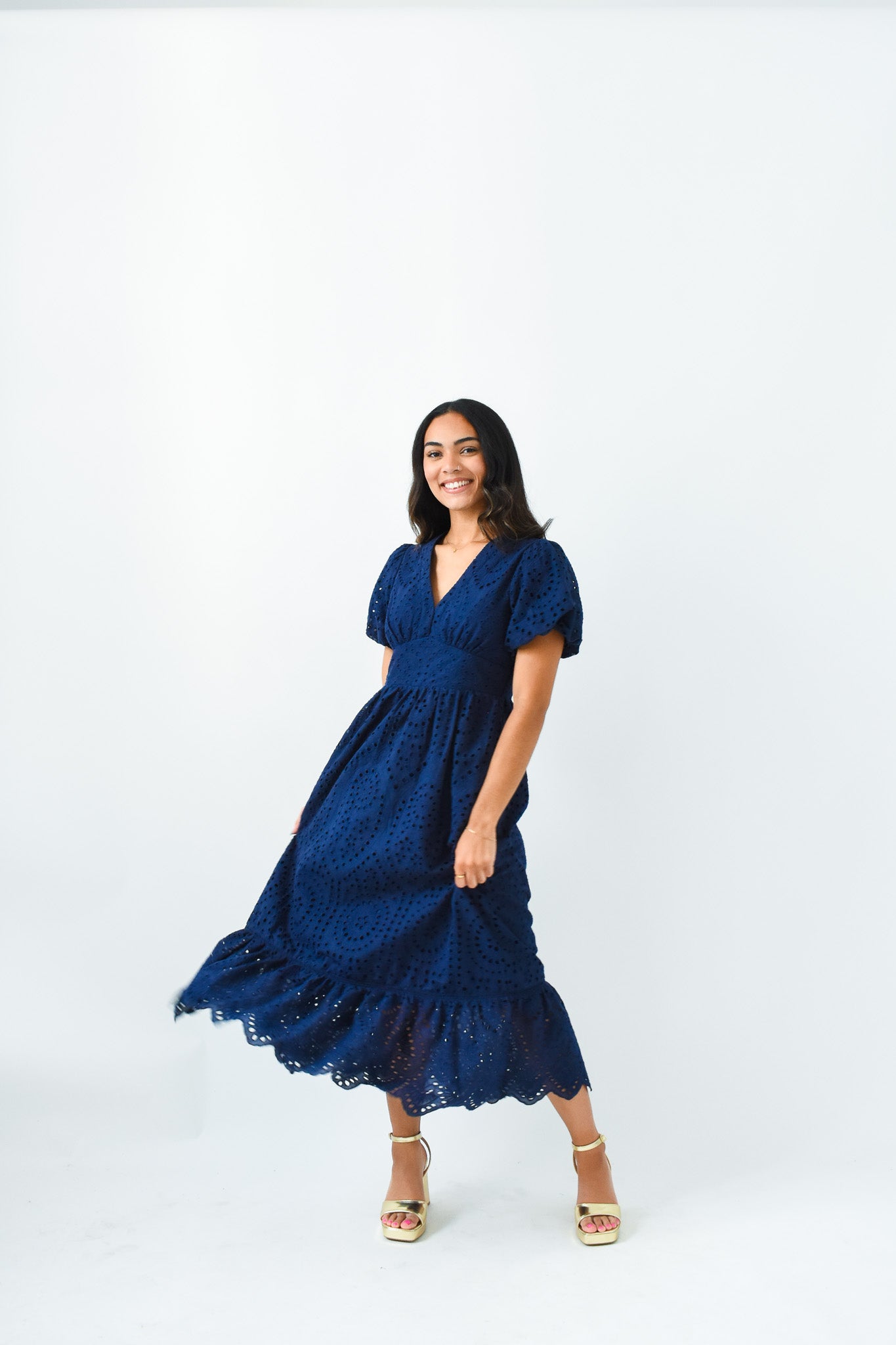 Our Eyelet It Slide Midi Dress is effortlessly chic and endlessly romantic. It's the perfect go-to for sunny days, bridal events, or dreamy getaways!