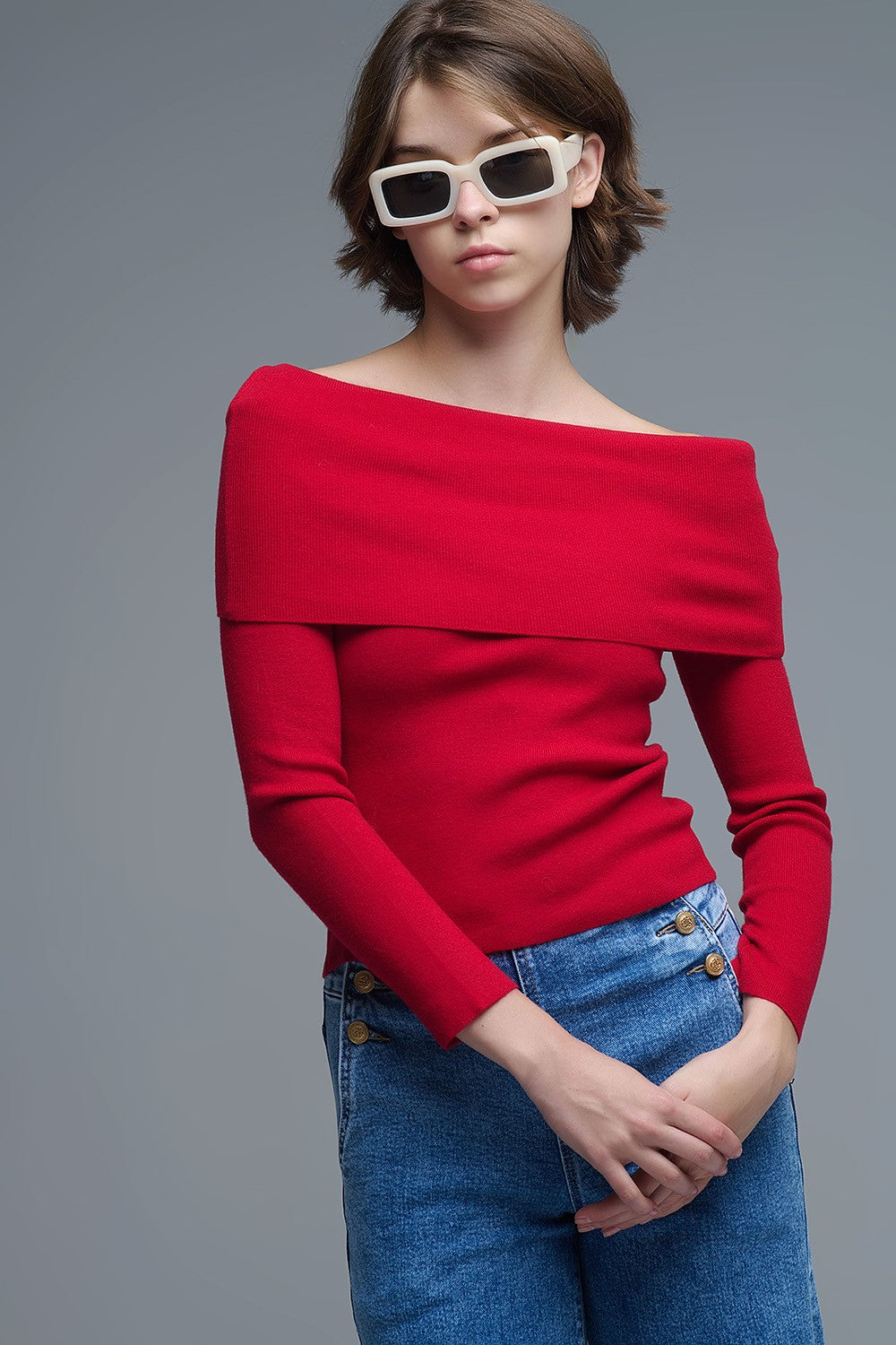 - Fold over off shoulder neckline