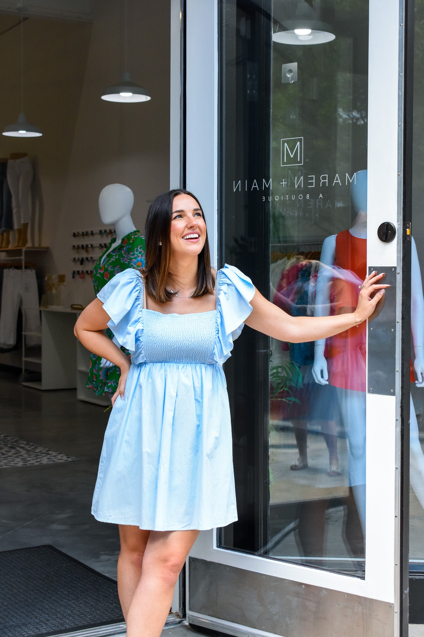 There's no escaping the heat when you show up in our Gianna Tie Back Babydoll Dress! It features a square neckline, flutter sleeves, smocking at chest, open back with tie detail and elastic band, side hand pockets, relaxed fit, and straight hem.