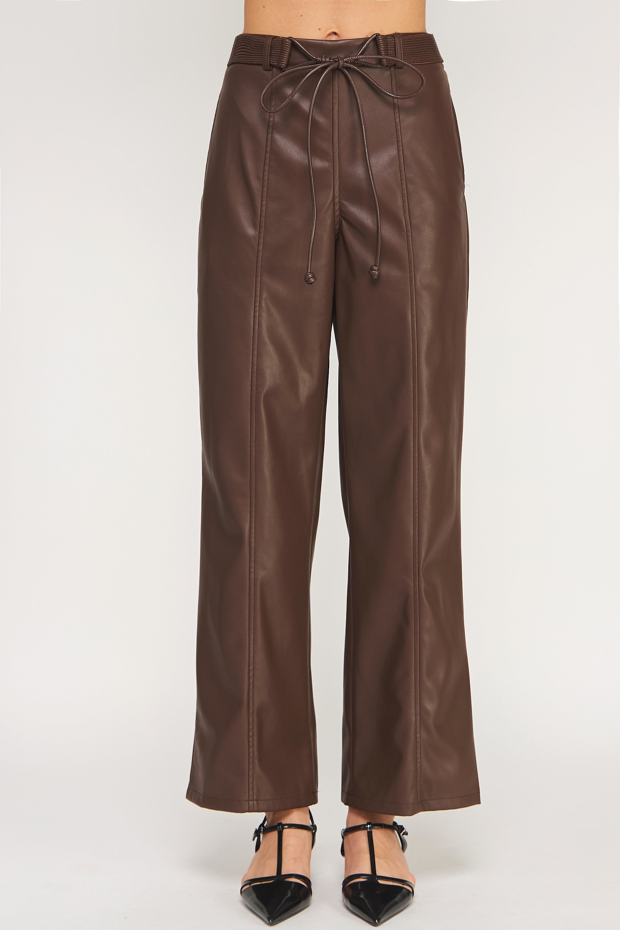 The statement pant your closet has been longing for. Our belted leather wide leg pants are the perfect compliment to any sweater!