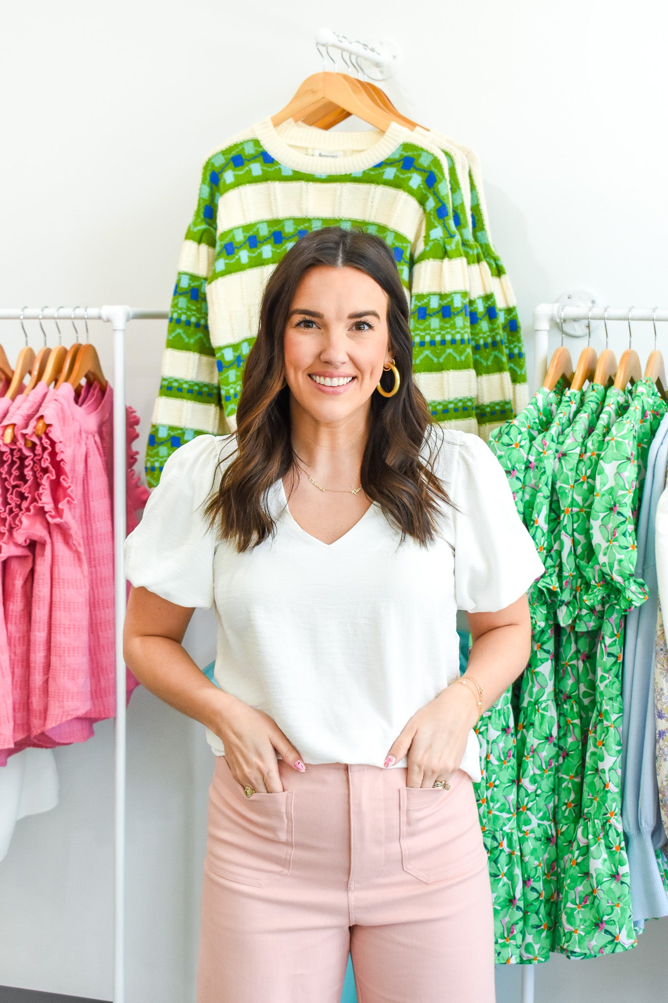 The perfect dress it up or dress it down style! Our Simple Stunner Bubble Sleeve Top features a v-neckline, short bubble sleeves, relaxed fit, and straight hem.