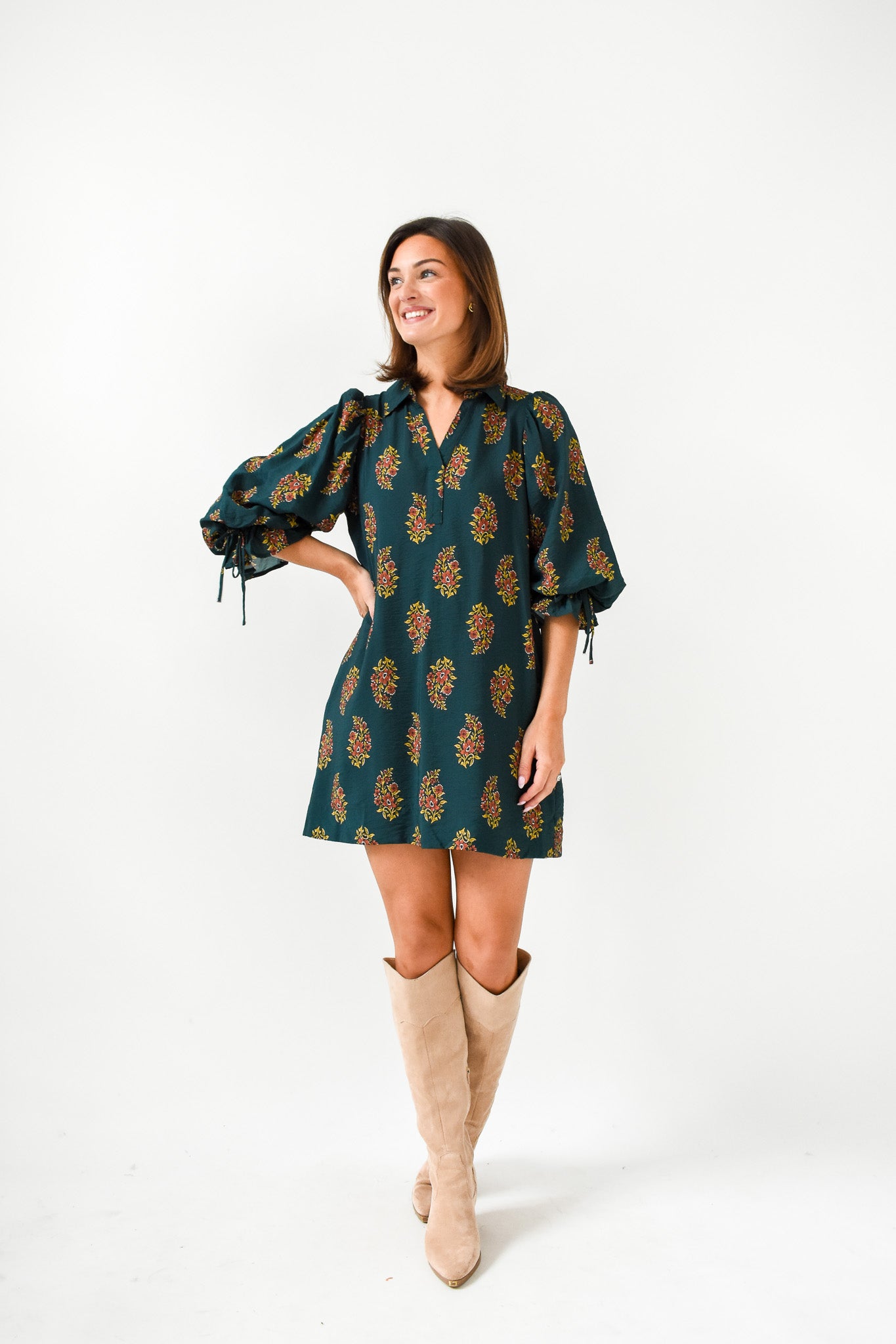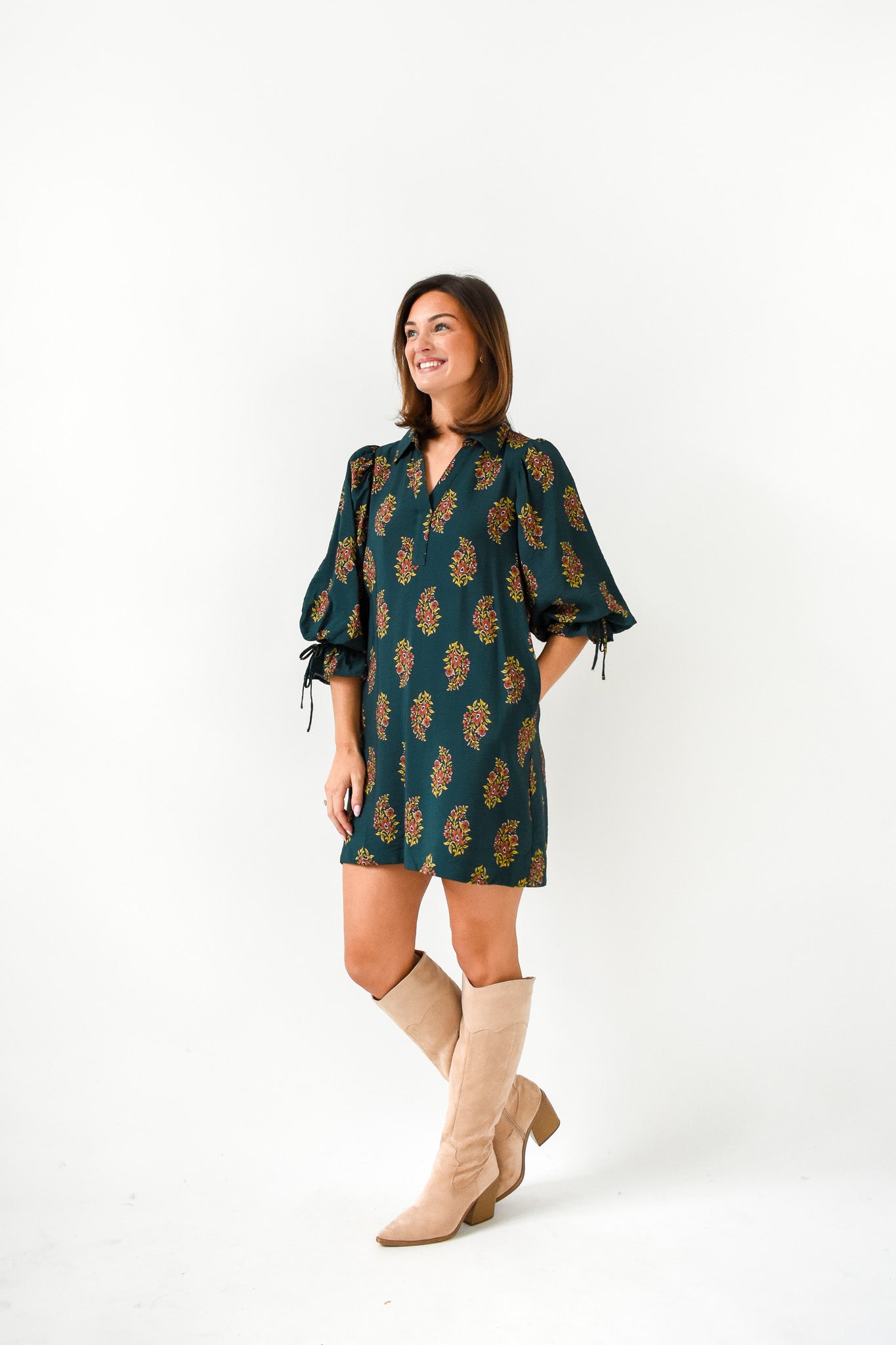 - 3/4 length puff sleeves